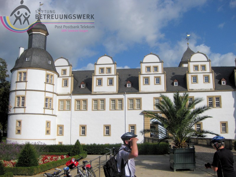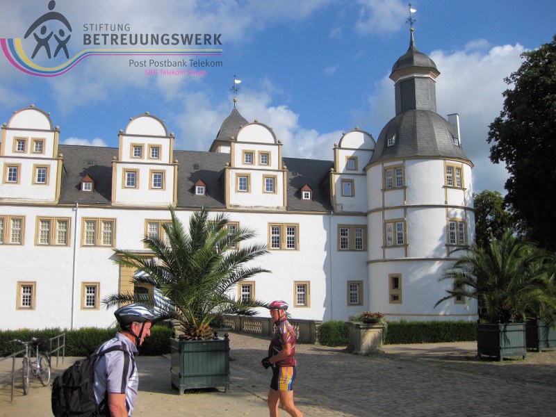 Start war nach einem guten Frühstück schon um 08:15 Uhr. Nach kurzer Zeit erreichten wir Schloss Neuhaus, ein Paradebeispiel der Weserrenaissance. Heute beherbergt das Schloss u.a. eine Schule. Vorbei an der Freizeitanlage Lippesee fuhren wir Richtung Lippstadt. Vergeblich suchten wir unterwegs an einer Gaststätte für die Mittagspause, denn die gastlichen Häuser hatten montags alle Ruhetag. So erreichten wir bereits um 14:30 Uhr unser Etappenziel Bad Waldliesborn. Dort wurde in einem Cafe die verspätete Pause nachgeholt. Von dort waren es nur noch wenige Meter bis zum gebuchten Hotel, das Parkhotel Ortkemper. Nach 51 Km schmeckte der Begrüßungstrunk sehr gut. Das Abendessen haben wir in einer Gaststätte im Ort zu uns genommen. Die Entscheidung war nicht so gut, denn das Essen hätte besser sein können. Leider hatten wir vorher übersehen, dass die Küche im Hotel seit Jahren mit einem Michelinstern ausgezeichnet wird. Da hatten wir etwas Pech gehabt.