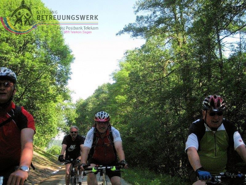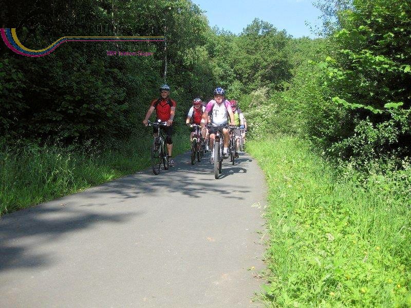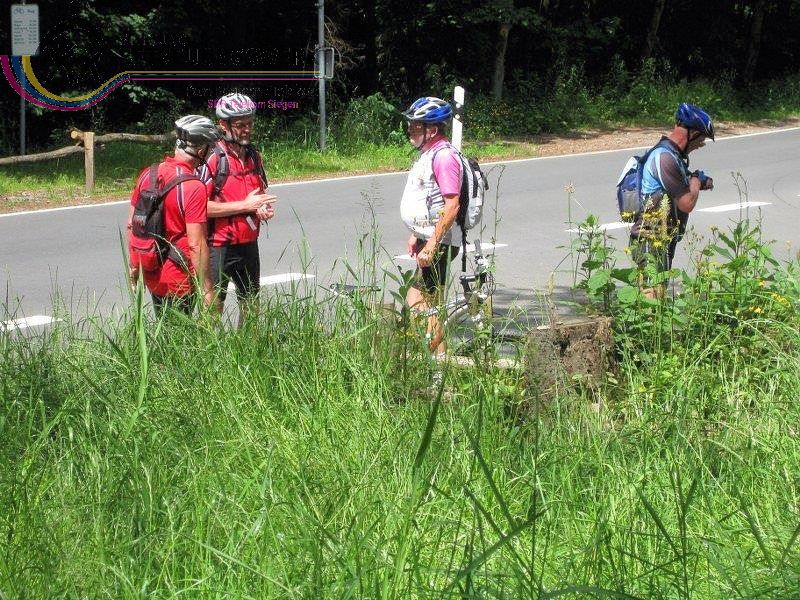 Am 12.Juni trafen sich um 9:30 Uhr 11 Fahrradfahrer auf dem Parkplatz des Freizeitparks in Netphen um den „Netpher Radring“ mit allen Steigungen und Abfahrten unter die Räder zu nehmen. Das erste Etappenziel war am Freibad Deuz schnell erreicht. Ab da waren wir dann mit 11 Radlern und einer Radlerin unterwegs. Ab dort ging es über Salchendorf und Werthenbach weiter nach Hainchen, durch den Geiersgrund Richtung Lahnhof. Vor dem langen Aufstieg wurde noch einmal gerastet und die Beinmuskeln wurden auf die „Bergetappe“ vorbereitet. Mit nur einem Zwischenstopp auf halber Höhe kamen wir gegen 12:00 Uhr auf dem Lahnhof an, wo wir uns im Forsthaus Lahnquelle zur ausgiebigen Mittagsrast niederließen. Schließlich blies unser „Chef“ Walter zur Weiterfahrt. Diese führte uns über sanfte Steigungen und Abfahrten zur Siegquelle, wo die Gelegenheit genutzt wurde die Trinkflaschen aufzufüllen. Weiter ging es über die Eisenstraße zum Forsthaus Hohenroth, hier verabschiedeten wir einen unserer Mitradler Richtung Kreuztal. Die anderen freuten sich schon auf die tolle Abfahrt zur Obernautalsperre, über dessen Rundweg wir in entspanntem Fahren schließlich wieder am Startort Parkplatz Freizeitpark eintrafen und zum Teil mit den Autos und zum anderen für 2 unentwegte mit Fahrrädern den Heimweg nach Wilnsdorf und nach Burbach unter die Räder nahmen.