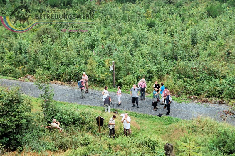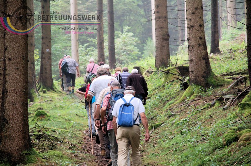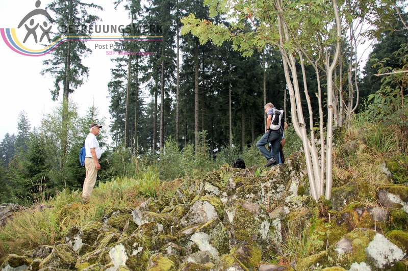 Zwanzig frohgelaunte Wanderfreund-innen/-e versammelten sich am 29. Juli 2014 auf dem Wanderparkplatz im Buchhellertal bei Burbach. Die Wanderführer Beate und Walter begrüßten die Anwesenden recht herzlich und verteilen sofort Flyer vom Trödelsteinpfad, dem Premiumweg im Mittelgebirge, einem Teil der Rothaarsteig-Spuren. Es folgte ein kurzer Hinweis von Walter, in der ersten Hälfte gehen wir immer bergauf, dafür in der zweiten Hälfte fast nur bergab. Es folgte die Kurzcharakteristik der Wanderung: Eine erlebnisreiche Tour mit hohem Pfadanteil in reizvollem landschaftlichem Umfeld. Neben den Besonderheiten der basaltartigen Burbacher Naturlandschaft im Übergang vom Rheinischen Schiefergebirge zum Westerwald, gibt es zahlreiche Beispiele aus dem historischen Eisenerzabbau. Besonders schön: die Kombination aus abenteuerlichen Pfaden und Waldpassagen, idyllischen Wiesen, tollen Aussichten und dem plätschernden Wasser. Als Änderung der offiziellen Wanderstrecke erfolgt zusätzlich eine Einkehr zur Verpflegung in der Ortschaft Wahlbach.