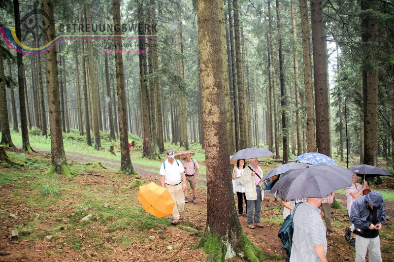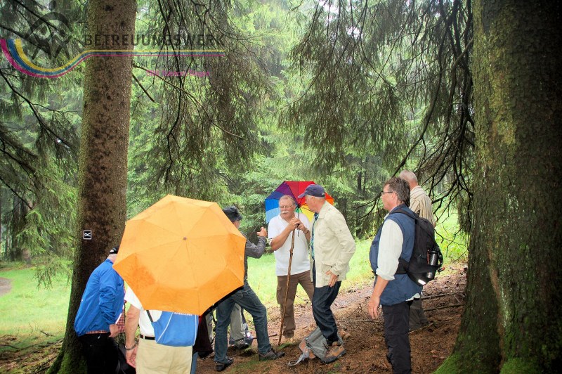 Vom Parkplatz wanderten wir eine kurze Strecke talwärts zum Burbacher Einstieg in den Rundwanderweg des Trödelsteinpfades. Durch Waldabschnitte ging es an alten Bergwerken, darunter die Grube Crone, immer bergauf zum Naturdenkmal Trödelsteine, im Grenzgebiet der zwei Bundesländer Nordrhein Westfalen und Rheinland-Pfalz. Entstanden ist dieser Säulenbasalt im Tertiär (Erdzeitalter vor etwa 65.000 Millionen Jahren) und Quartär (Erdzeitalter, welches vor ca. 2,6 Millionen Jahren begann und bis heute andauert). Anders als im Hohen Westerwald, wo sich eine geschlossene Basaltdecke ausgebildet hat, bildeten sich bei den „Trödelsteinen“ nur einzelne Quellkuppen aus. Einige machten sich die Mühe um auf die Spitze der „Trödelsteine“ zu klettern, wurden aber wegen der tiefliegenden Wolken nicht mit einem herrlichen Ausblick bis weit ins Siegerland belohnt. Nach kurzer Rast ging es über den Siegerländer Höhenweg, am Nenkersberg vorbei zum Naturschutzgebiet Saukaute. Nachdem wir das Naturschutzgebiet verlassen hatten, fanden einige Pilzkundige essbare Spezialitäten und sammelten diese für den häuslichen Verzehr. In Wahlbach verließen wir den Trödelsteinpfad zur Einkehr in das Restaurant Iss wat. Nach der Stärkung gingen wir wieder zurück zum Trödelsteinpfad und wanderten nun bachaufwärts an der Buchheller zurück zum Parkplatz. Dort großer Dank an die Wanderführer für die gewählte Tour und das hinnehmbare Wetter (vereinzelt Sprühregen).