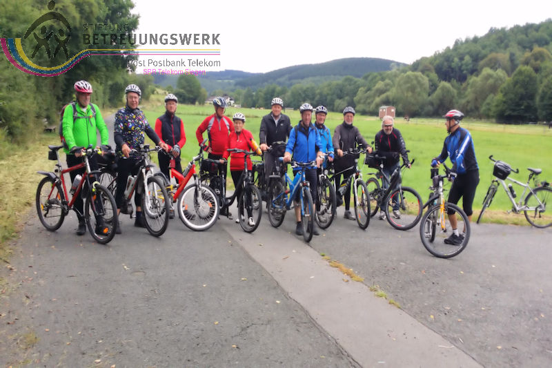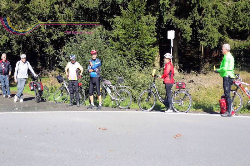 Früh aufstehen war das Motto am Dienstag, den 08. September 2015, denn Treffpunkt war bereits um 08:30 Uhr auf dem Parkplatz unter der HTS in Siegen–Geisweid. Eine Frau und elf Männer fuhren die ersten 500 Meter bis zum Bahnhof (sehenswert) in Geisweid. Über einige „Steilstufen“ erreichten wir den richtigen Bahnsteig (Gleis 1), um mit der Hessischen Landesbahn in der Regionalbahn RB93 (Rothaar-Bahn) nach Erndtebrück (Gleis 3) zu fahren. Die Tickets mussten im Zug gekauft werden. Der Fahrkartenautomat stellte sich als kaum überwindbares Hindernis vor. Von den benötigten drei 4er-Tickets konnten zwei nach zäher Verhandlung mit einer EC-Karte bezahlt werden. Bargeld wollte der Apparat nicht haben. Für das dritte Ticket haben wir so lange gebraucht, dass die Fahrt auf einmal billiger wurde. Glück muss man haben. Nach einem langen Zwischenstopp in Hilchenbach–Lützel erreichten wir schließlich Erndtebrück. Der Bahnhof ebenso sehenswert, wie der in Geisweid. Nun wurden die Fahrräder gebraucht. Nach einiger Zeit erreichten wir Benfe und die höher gelegene Eisenstraße. Ab hier fuhren wir an der Siegquelle vorbei bis zum Lahnhof. Von dort aus gab es eine lange zum Teil steile Abfahrt bis nach Hainchen. Der weitere Weg führte über Salchendorf nach Deuz. In der Ortsmitte haben wir die Mittagspause in einer Imbissstube eingelegt. Nach der Stärkung war es kein Problem mehr die letzten Kilometer über Netphen, Weidenau nach Geisweid zu bewältigen. Es war eine sehr schöne Tagesfahrt bei idealem Fahrradwetter.