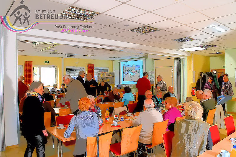Wie im Vorjahr waren die Mitglieder des Seniorenbeirates bereits um 09:30 Uhr zum Aufbau der Tische, Bestuhlung und Vorbereitung für die Bereitstellung der Verpflegung in Aktion getreten. Um 13:30 war alles bereit für den Beginn der Veranstaltung. Norbert Schulz eröffnete die Veranstaltung und begrüßte alle Anwesenden recht herzlich und stellte den Veranstaltungsverlauf kurz vor, insbesondere die Stellwände mit Ausschnitten, die Bezug zu Telekomangehörige aus den letzten Jahren hatten und wechselnde Veranstaltungsbildern aus dem aktuellen Jahr auf den Leinwänden. Ansonsten möge das Treffen zum Meinungsaustausch untereinander dienen.