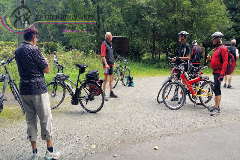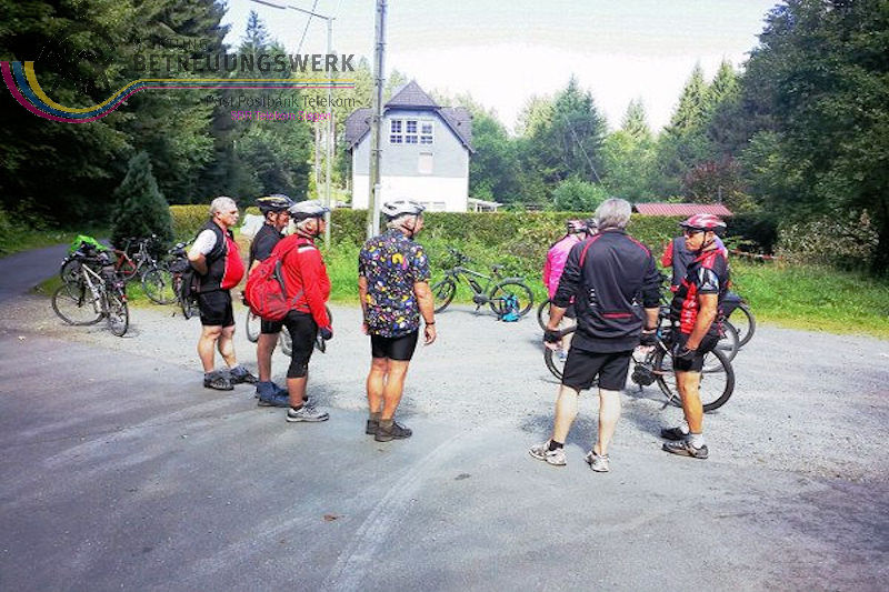 Treffpunkt für die 10 TeilnehmerInnen war der Parkplatz unter der HTS an der Stahlwerkstr. 4 in Siegen–Geisweid. Pünktlich um 09:30 Uhr war der Start zur heutigen Tagestour. Etwas unpünktlich setzte der Regen ein. Zum Glück konnten wir uns, noch in Geisweid, unter einem Carport unterstellen. Nach 10 Minuten war der Spuk vorbei und wir hatten für den Rest des Tages ideales Fahrradwetter. Über Meiswinkel, Oberholzklau und Bühl kamen wir in Freudenberg an. Ab hier über die alte Bahnstrecke Richtung Olpe. Kurz hinter dem Tunnel bei Hohenhain wurde die erste Pause eingelegt. Dort kreuzten wir zum ersten Mal die Landesgrenze von Nordrhein-Westfalen und Rheinland-Pfalz. Nach der Stärkung fuhren wir weiter über Wildenburg-Bahnhof nach dem kleinem Ortsteil Hilchenbach in der Ortsgemeinde Friesenhagen, die wiederum zur Verbandsgemeinde Kirchen (Sieg) gehört. Von dort über die Landesgrenze, diesmal von Rheinland-Pfalz nach Nordrhein-Westfalen, weiter durch Trömbach zum Ortsteil Rothemühle in der Gemeinde Wenden. Dort hatten wir die größten Steigungen des Tages bezwungen. Vorbei an der Wendener Hütte kamen wir nach einigen Kilometer in Gerlingen an, wo wir unter fast blauem Himmel die Mittagsrast einlegten. Nach der Stärkung (sehr gut) fuhren wir über Wenden, Girkhausen und Fellinghausen Richtung Kreuztal. Hier verabschiedeten sich zwei Teilnehmer, denn sie waren bereits wieder zu Hause. In Buschhütten verließen uns ebenfalls wieder zwei Radfahrer. Wie man munkelt, sollte ein E-Bike besichtigt werden. Das Ergebnis ist mir nicht bekannt. Der Rest der Gruppe fuhr dann noch das kurze Stück bis zum Startort in Geisweid. Eine schöne Fahrt war zu Ende und alle freuen sich schon auf die nächste Tagestour (wahrscheinlich Aartalsee).