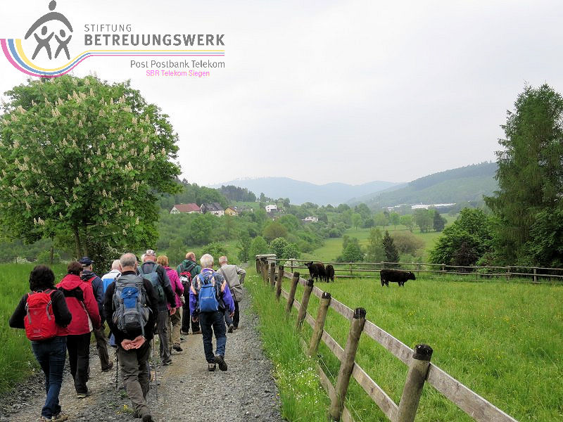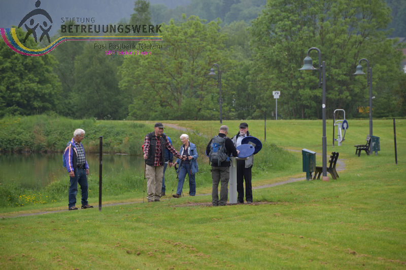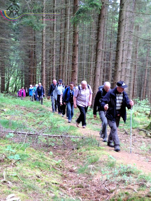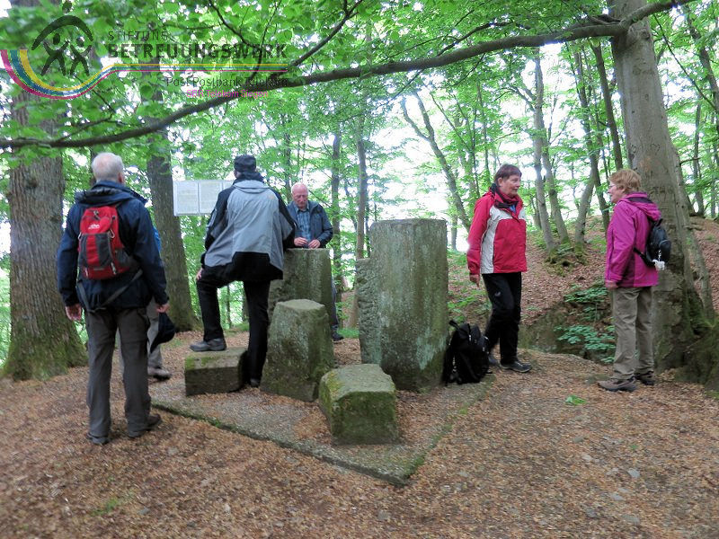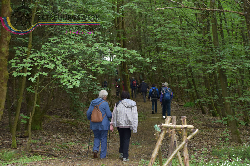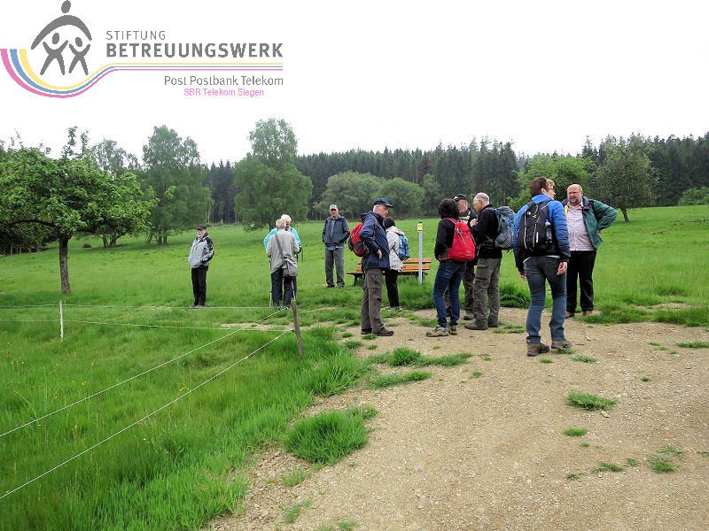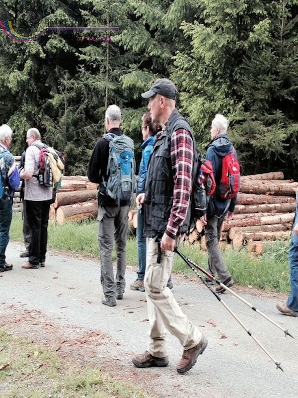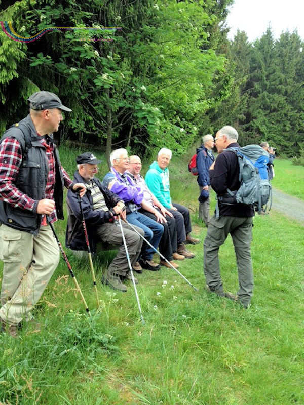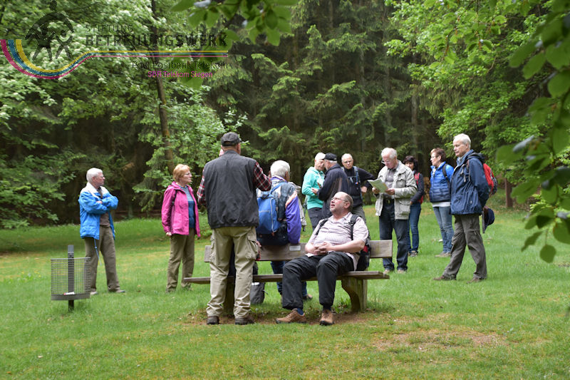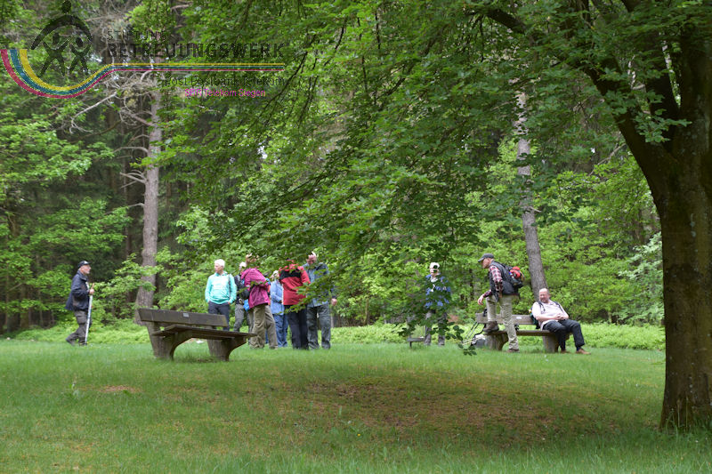 An diesem 25. Mai trafen sich 18 WanderInnen im Lahn-Dillkreis beim Hammerweiher in Dietzhölztal–Steinbrücken um die Wanderstrecke Silberpfad zu absolvieren. Unser Wanderführer Jürgen begrüßte alle recht herzlich und fragte kurz den Essenswunsch für die spätere Einkehr ab. Am Minigolfplatz und dem Hammerweiher vorbei ging es bergan durch den Wald hinauf auf den Weg oberhalb des Ponyhofes zur Grenzeiche an der Verbindungstraße K32 zwischen Steinbrücken und Roth. Die Grenzeiche markiert heute die Grenze zwischen den Gemeinden Dietzhölztal-Steinbrücken und Eschenburg–Roth, sowie die Grenze zwischen den Landkreisen Lahn-Dillkreis und Marburg-Biedenkopf und früher zwischen Nassau und Hessen-Darmstadt. An historischen Grenzsteinen vorbei ging es zur Eierbank-Hütte am Jakobsweg Marburg-Siegen. Nach einer kurzen Rast wanderten wir weiter zur Philippsbuche. Am 10.09.1552 kehrte Landgraf Philipp von Hessen nach fünfjähriger Gefangenschaft zurück in seine Heimat und betrat am Staffelböll wieder hessischen Boden. Die Simmersbacher Bürger pflanzten wenige Jahre später zum Gedenken an dieses Ereignis eine Buche, die so genannte Philippsbuche. Um den Baum wurde 1910 ein Denkmal errichtet. Die mittlerweile abgestorbene 400-jährige Buche musste 1963 gefällt werden. Aus einem Sämling von ihr wurde aber ein neuer Baum gepflanzt. Von dort wanderten wir am Modellflugplatz Simmersbach weiter zum Schloßberg. Dort wurde im 14. Jahrhunderts die Burg Hessenwald vom Landgrafen von Hessen erbaut, aber in einer Fehde mit dem Grafen von Nassau-Dillenburg wenige Jahre später zerstört. Im weiteren Verlauf verließen wir den Silberpfad. Wir folgten der Schloßbergstr. und dem Friedhofsweg durch die Ortschaft Roth, dann wieder auf den Silberpfad weiter über dem Waldpfad auf den geschotterten Weg, wo wir jedoch wieder den Silberpfad verlassen haben, der erneut auf einen Waldpfad abbog. Über den geschotterten Weg gingen wir weiter und hatten einen Ausblick auf die Silbergrube Gottesgabe. Der weitere Weg über den Silberpfad zu den 2 anderen Silbergruben war wegen Holzfällarbeiten nicht möglich. Nach dem erzwungenen Umweg folgten wir dem Silberpfad weiter zum Hammerweiher, unserem Ausgangspunkt. Wir kehrten dort im Haus Am Weiher zur Stärkung ein.