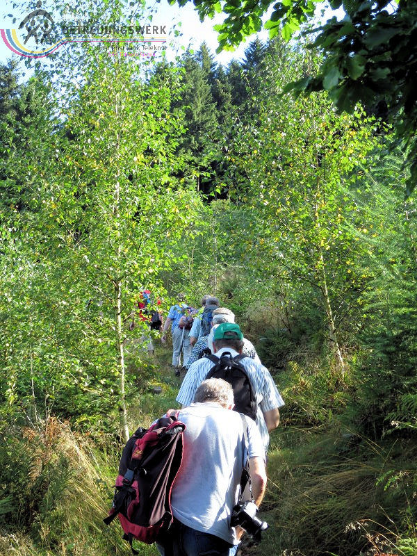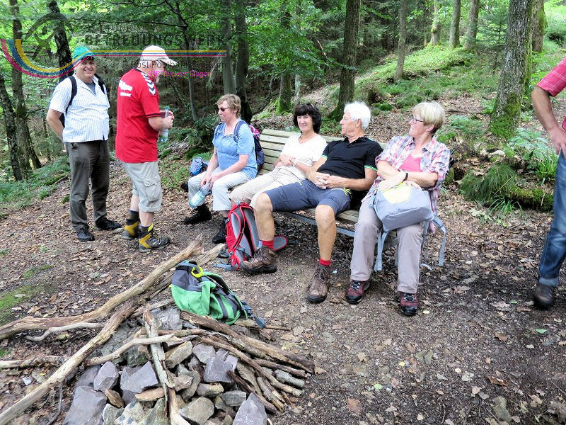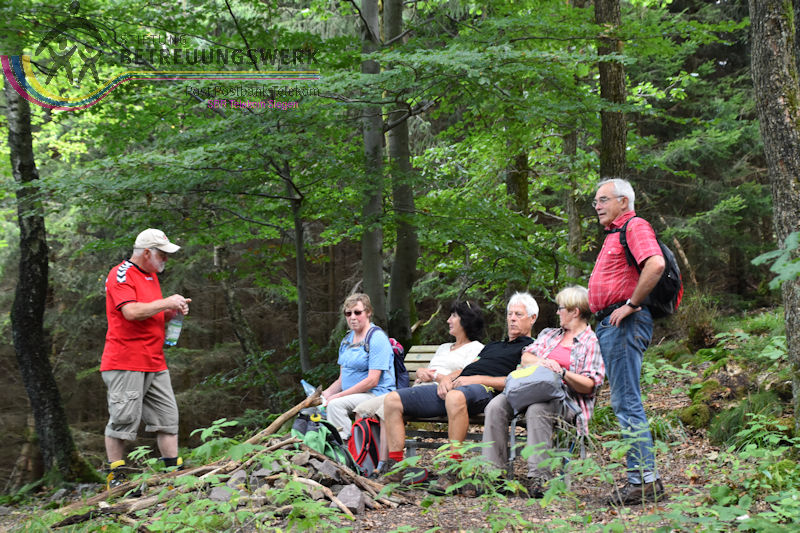 Pünktlich zum Start unserer Wanderung am 06.09.2016 hatte sich der Nebel verzogen und bei herrlichem Sonnenschein konnten wir mit 12 WanderInnen die Wanderung vom Parkplatz „Haus des Gastes“, Grubenweg 18 in 57399 Kirchhundem–Oberhundem beginnen. Horst und Beate begrüßten uns herzlich und erläuterten kurz den Weg, der vor uns lag. Zunächst ging es ein Stück durch das „Golddorf“ (1965 & 1973) Oberhundem mit den schönen Fachwerkhäusern. Weiter ging es über den „Eselspfad“ (Premiumwanderweg) lange bergauf, bergab. Dabei konnten wir den Rhein-Weser-Turm und die Hohe Bracht erblicken. Wir erreichten, begleitet von tollen Fernsichten bis ins Ebbegebirge, das Alpenhaus. Es folgte nun eine wunderschöne Aussichtsrunde, auf der wir auch unsere Mittagsrast einlegten und wir die tolle Landschaft genießen konnten. Unsere Blicke gingen in Richtung Milchenbach, Schmallenberg, Hunau und den Fernmeldeturm Meschede. Das nächste Ziel waren die Oberhundemer Klippen, wo einige von uns hochstiegen, um Fotos zu machen. Wir anderen machten es uns auf einer Bank gemütlich und witzelten über dies und das. Zurück bis zum Parkplatz waren es nur noch wenige Kilometer. Dort angekommen entschieden wir uns spontan zu einem gemütlichen Ausklang bei einer Tasse Kaffee, auf der Terrasse des Haus des Gastes. Wir waren begeistert von der heutigen Tour, zumal das Wetter uns die herrlichen Ausblicke erleben ließen. Horst, Beate und Rolf, erzählten uns während der Wanderung immer wieder Wissenswertes. Unsere Wanderung war ca. 14 km lang und hatte 632 Höhenmeter.