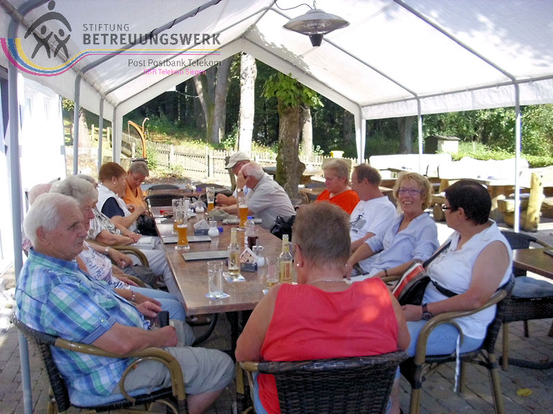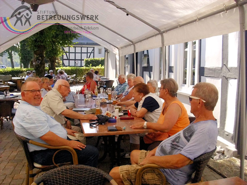 Christel gibt den geplanten Streckenverlauf bekannt. Wir überqueren zunächst die Brachtpe, gehen über den Rad- und Wanderweg in Richtung Ronnewinkel. Dabei bewegen wir uns überwiegend im schattigen Mischwald, aber dicht am Ufergelände entlang. Ärgerlich ist nur der Anblick von Müll, den „umweltbewusste“ Zeitgenossen am Wegrand ganz einfach liegen lassen. Im Ronnewinkel stoßen wir auf den Franz-Hitze-Pfad. Hier schaut man auf die Bahnstrecke Olpe – Sondern und hat den Obersee der Biggetalsperre vor Augen. „Weil wir einmal hier sind“, so wurde gesagt und der kurze Abstecher zur St.-Valentins-Kapelle mit einbezogen (auf dem Foto leider nicht zu sehen). Die zweite Hälfte unserer Wanderung führt uns an der gegenüberliegenden Talseite wieder nach Rosenthal. Am Wegrand liegt noch ein „Biggekahn“, der zum Einstieg einlädt. Als bald sehen wir wieder den Ort, wo man uns im gediegenen Gasthof Rosenthal erwartet. Fazit von heute: das in dieser frühherbstlichen Jahreszeit fast einmalige Sommerwetter haben wir nach unseren Möglichkeiten gut genutzt! Wir kommen wieder – und sei es nur zu einem Sonntagsausflug von dem einen oder anderen von uns.