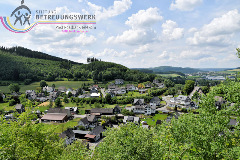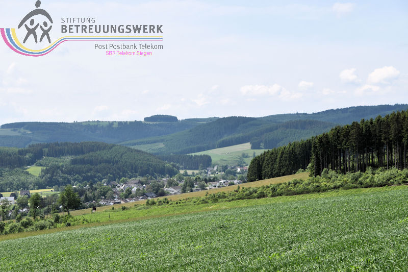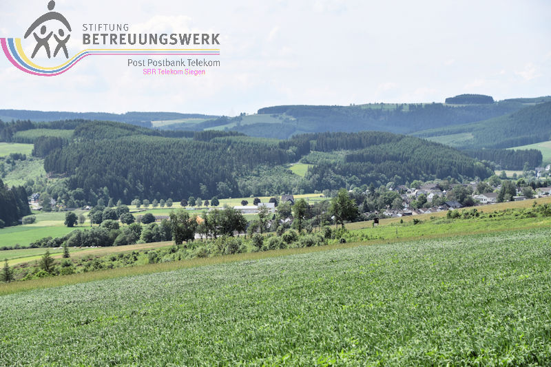 Bei dem Schulzentrum wechselten wir wieder auf Raumländer Gebiet, dem Hinterstöppel. Durch das Neubaugebiet und den Wald wanderten wir zum Vorderstöppel, dort hinunter zur B480, die wir, wie auch die Odeborn überquerten, die Rothaarbahn wieder unterkreuzten. Durch die Pfarrwiese, eines der 5 Ortsteile von Raumland, hinauf zum Naturschutzgebiet Hörre zum Tagesbruch, rasteten wir wieder um die Aussicht auf Raumland, die Bonifatiuskirche mit dem ältesten zusammengehörigen Geläut in NRW, Berghausen, sowie dem Fernmeldeturm Hohe Hessel bei Kirchhundem–Oberhundem zu genießen. Nach der Rast konnten wir noch Einblicke in die gegenüberliegenden Raumländer Steinbrüche erhaschen, bevor es die Hörre hinab zum Reisegarten, unserem Startpunkt ging.