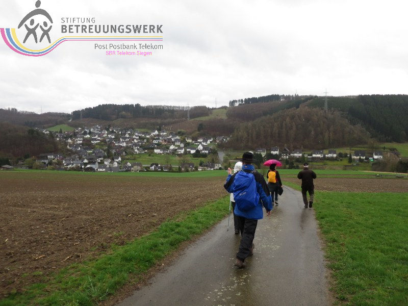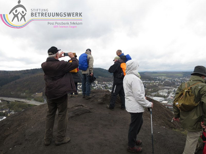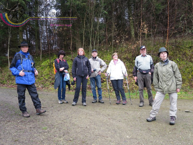 Unsere Rucksackwanderung „Rund um Klafeld“ am 05. April 2016 begann mit leichtem Regen. Dies schreckte uns jedoch nicht. Insgesamt starteten wir gegen 09:40 Uhr mit 10 Personen unsere Wanderung, in Geisweid in der Stahlwerkstraße. Zunächst überquerten wir die Weidenauer Straße und gingen unter der HTS weiter, vorbei an dem Gebäude der früheren Weidenauer Brauerei, in dem heute ein Teil der Universität Siegen – Fachrichtung Kunst untergebracht ist. Weiter ging es bergauf. Bei kurzen Stopps erzählte uns während des gesamten Weges Wanderführer Hermann einiges zu der Geschichte „Klafeld“ und wohin wir gerade schauten. Weitere Informationen steuerten der eine oder andere bei. Trotz trüben Wetter gab es viel zu bestaunen. Unser Weg führte ein Stück über die alte Panzerstaße, dann ging es wieder runter zur Birlenbacher Straße, die wir überquerten und bergauf vorbei an der heutigen Gesamtschule Geisweid. Nachdem wir auch die Verbindungsstraße von Langenholdinghausen nach Geisweid überquert hatten, führte unser Weg mal hoch mal runter oberhalb von Buschhütten bis wir in Dillnhütten die Geisweider Straße überquerten zum Ferndorfsteg. Durch die Untertunnelung der HTS und der Eisenbahn gelangten wir in die Setzer Str. und folgten dieser in Richtung Niedersetzen. Dort galt es noch einige längere Steigungen zu bewältigen, die jedoch alle gut schafften und wir schließlich am Haardter Berg ankamen. Nach einem Stück bergab wagten wir uns dann auf den Monte Schlacko und wurden trotz Regen mit einem Blick über ganz Siegen bis hin zur Kalteiche und ins Wendener Land belohnt. Wir waren uns einig, der Aufstieg hat sich gelohnt, ebenso die ganze Wanderung. Jeder war froh, sich trotz des anfänglichen Regens auf den Weg gemacht zu haben. Auch, dass die Rucksack-Wanderungen grundsätzlich ohne Einkehr gedacht sind, fand guten Anklang. Nach ca. 10 Min waren wir nun wieder am Parkplatz. Der große Regen kam, als wir gerade in unseren Pkw`s saßen und uns auf die Heimfahrt machten. Wir legten 15,9 Kilometer und 585 Höhenmeter zurück.
