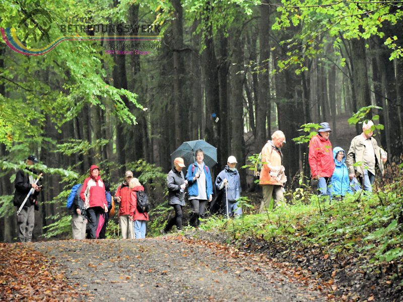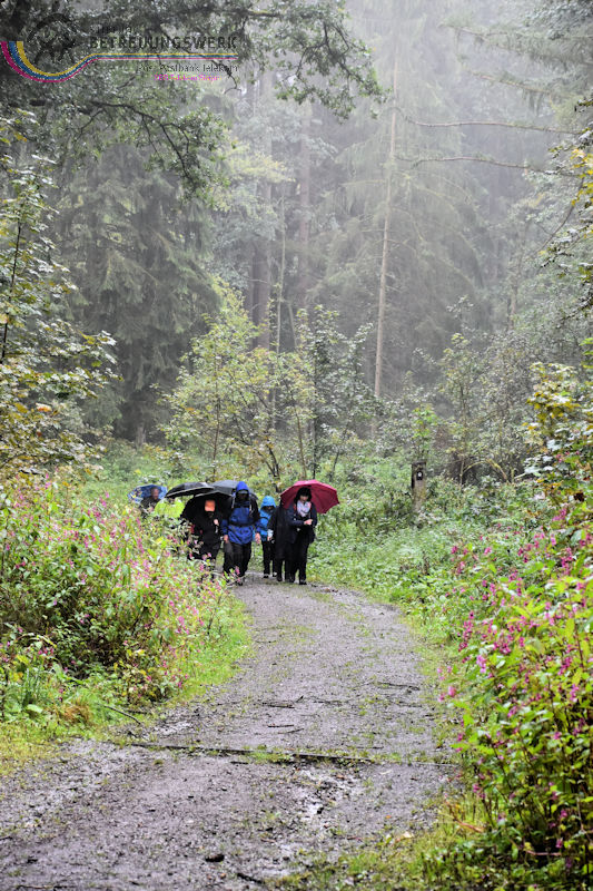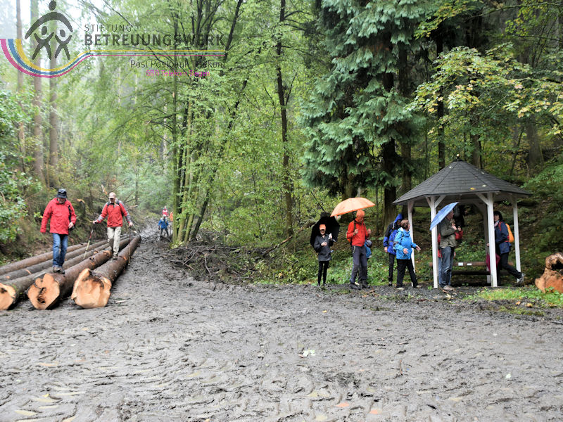 Leider begann es bereits zu Beginn der Wanderung zu regnen, was die bereits ziemlich durchweichten Wege nicht gerade angenehmer machte. Ein langes Stück bergab war sogar zusätzlich stark durch Fahrzeuge und Äste sehr matschig. Ein Lob an die Gruppe, dass alle durch rücksichtsvolles Gehen, dieses Stück auch gut gemeistert hat. Die Wanderstrecke betrug 14,13 Kilometer und wir legten 549 Höhenmeter zurück.