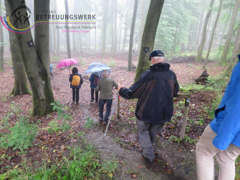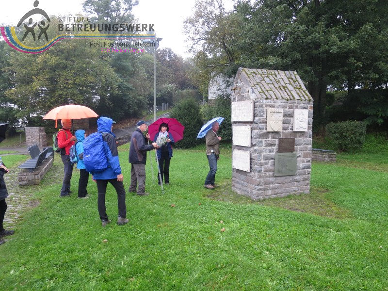Zur Wanderung auf dem „Historischen Rundweg Achenbach“ trafen sich 19 WandererInnen auf dem Parkplatz von Ikea, Wallhausenstraße 60, 57072 Siegen. Pünktlich wanderten wir zunächst bis zum Kreisel beim Hotel Johanneshöhe, Siegen-Achenbach, los. Dort überquerten wir die Straße und legten einen kurzen Stopp an der Erinnerungsstätte „Belgische Garnison“, ein. Einige nahmen sich einen Flyer, der die einzelnen Sehenswürdigkeiten sowie den Wanderweg, genau beschreibt, mit. Wir folgten der Markierung des „Historischen Rundweges Achenbach“, der schon bald an der Friedenskirche ins historische Engsbachtal, u.a. vorbei an einem „Rennofen-Modell“, führte. Auf diesem Rundweg informieren immer wieder verschiedenen Hinweistafeln u.a. über die Schmelzöfen aus der La-Tene-Zeit. Wir kamen an dem „Erfahrensfeld Schön-und-gut“ auf dem Fischbacherberg vorbei, auf dem sich der ehemalige Panzer- Schießstand der belgischen Garnison befand. Weiter führt der komplette Weg (ca. 12 km), mit einer Schleife durch das Naturschutzgebiet Numbachtal, Richtung Starker Buberg und dem Seelbacher Hauberg. Der Rundweg berührt auch den Jakobsweg, den Elisabethpfad und den Europäischen Wanderweg E1. Wieder in Achenbach angekommen, warfen wir nur einen kurzen Blick zur „Alten Schule“ und dem „Brunnen Tillmann-Ohrendorf“. Durch das Wiesental, vorbei an dem „Stelzenhaus“ wanderten wir zurück zu unserem Startpunkt und schlossen dort die Wanderung mit Essen und Kaffee ab.