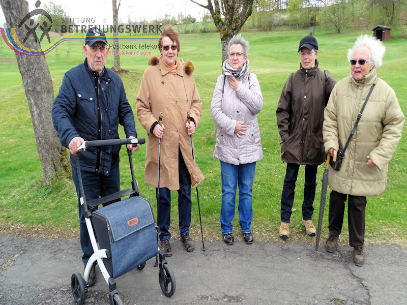 „Habt ihr auch die langen Unterhosen an?“ So begrüßte Wanderführerin Christel am 19. April neun Teilnehmer am Clubhaus des Golfclub Siegerland. Hier auf der Anhöhe zwischen Hees– und Berghäuserbachtal spürten wir nur vereinzelte Sonnenstrahlen aber permanent den eisig zu nennenden Nordwestwind. Deshalb verständlich, dass sich zwei Personen diesen Bedingungen nicht aussetzen wollten und sogleich ins gemütlichere Restaurant marschierten. Der Rest setzte sich trotzig in Bewegung über den geteerten Weg durchs 18 Loch-Golfgelände in Richtung Hof Berghaus. Zuvor hatte uns ein freundlicher Mitarbeiter der Golfanlage bereitwillig einen Ball und Schläger gezeigt: beides durften wir mal in die Hände nehmen – um zu spüren, dass wohl eine bestimmte Mischung aus Gefühl, Kraft und Beweglichkeit die Voraussetzung ist für Schläge über weite Strecken im hügeligen Gelände. Weiße Blütenblätter tanzten in der Luft – oder waren es doch Schneeflocken? Und beim Blick auf die grünen Flächen zur Linken: Einer der drei Golfer ist unser Telekom-Kollege … . Die Hälfte des Rundwegs war noch nicht erreicht, als sich drei Teilnehmer zur Umkehr entschlossen. Mit dabei unter den restlichen vier, die das Bachtal bis oberhalb Junkernhees umrundeten, war unser ältester Senior mit 88 Jahren – den Rollator als Begleiter! Alle, mittlerweile auf elf Teilnehmer angewachsene Wanderfreunde, bekundeten ihm großen Respekt, als nach etwa 1 ½ Stunden auch die letzten im gemütlichen Clubrestaurant Platz genommen hatten. Wenn sich bei dieser Tour niemand erkältet hat, bleibt festzustellen, dass es doch ein schöner Nachmittag war.