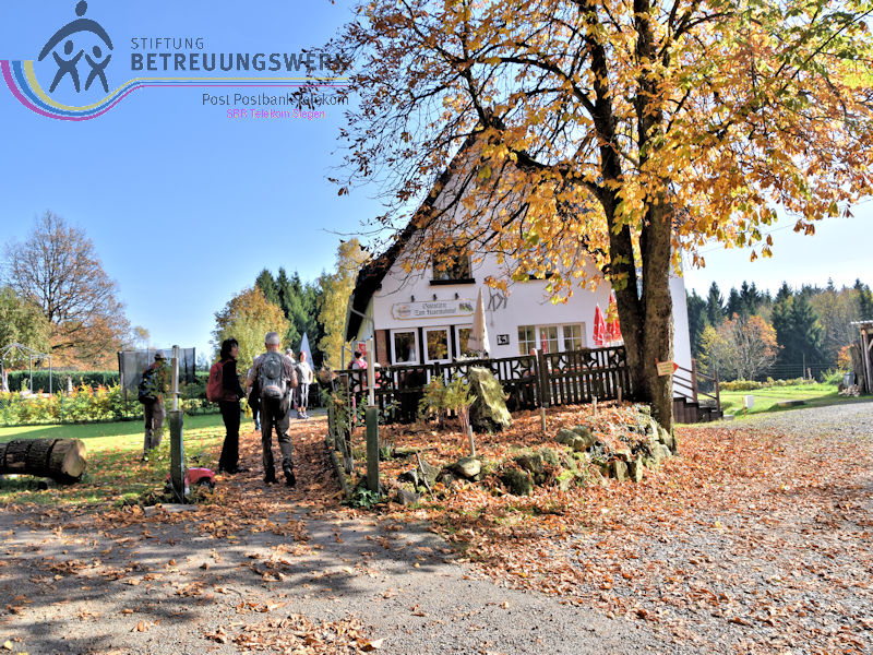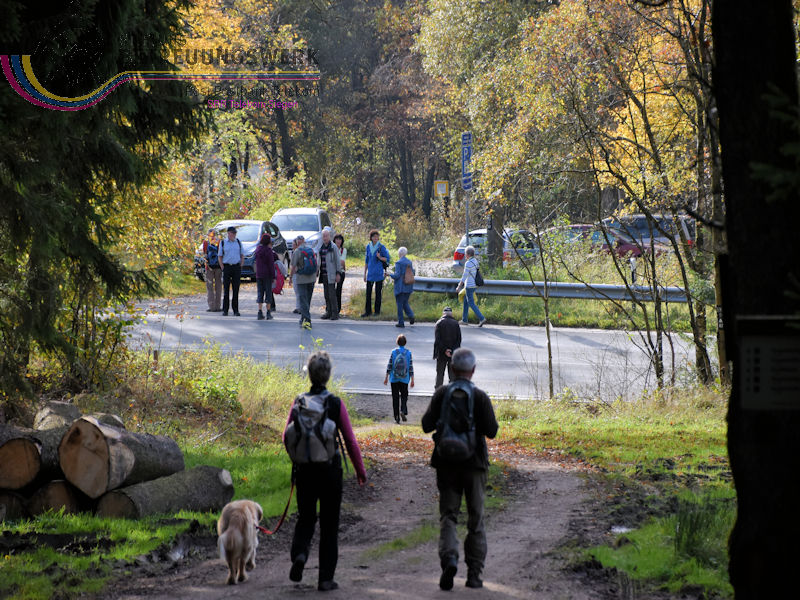 Bei sonnigem Oktoberwetter trafen wir uns auf dem Wanderparkplatz „Vorspanneiche“ (540Meter über NHN) an der L728 zwischen Hilchenbach und Kirchhundem–Brachthausen. Von dort wanderten wir über den Höhenweg bis zum Parkplatz „Wegescheid“ bei Wirme. Nach einer kurzen Rast wechselten wir bei der Matthias-Kapelle und dem Speicher des früheren Mühlengutes auf die andere Talseite und wanderten bergauf zur Pfarr- und Wallfahrtskirche Kohlhagen. Weiter ging es über den Höhenweg zum „Hasenbahnhof“ bei Brachthausen. Die vielen aus Holz gefertigten Hinweisschilder „Zum Hasenbahnhof“ waren nicht zu übersehen. Dort hatten Eveline und Klaus, unsere heutigen Wanderführer, uns zum Mittagessen angemeldet. Natürlich bot sich bei dem schönen Herbstwetter eine gute Fernsicht. So sahen wir z.B. den Kindelsbergturm, die Kuhhelle, die Hohe Bracht, verschiedene Windkrafträder, das „Alte Feld“ von Kirchhundem mit der oberhalb stehenden Heilig-Kreuz-Kapelle, und das „Gut Ahe“, das auch vielen von uns bekannt war bzw. schon dort eingekehrt waren. Nach einem guten Mittagessen wanderten wir noch ca. 2 Kilometer bergab, bis zu unserem Startpunkt. Wir 20 WandererInnen legten insgesamt 13 Kilometer und 408 Höhenmeter zurück.