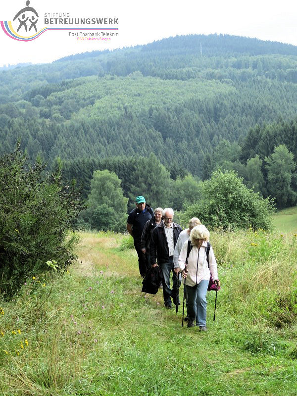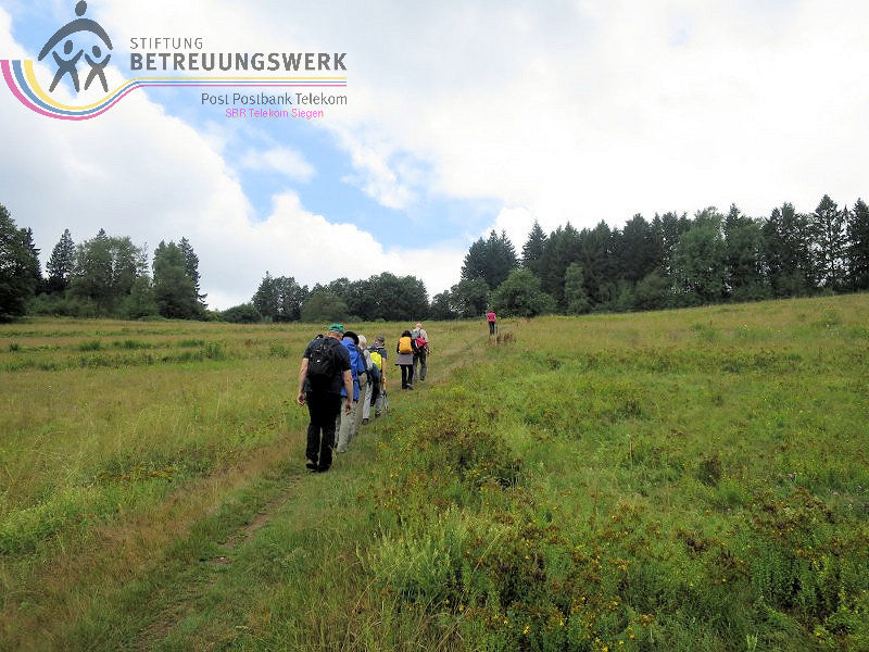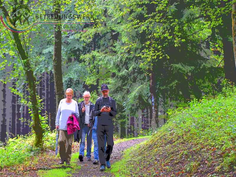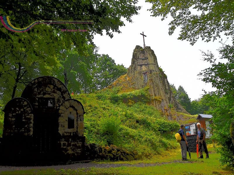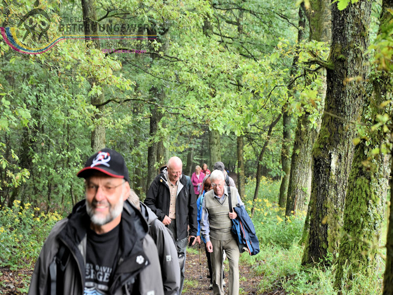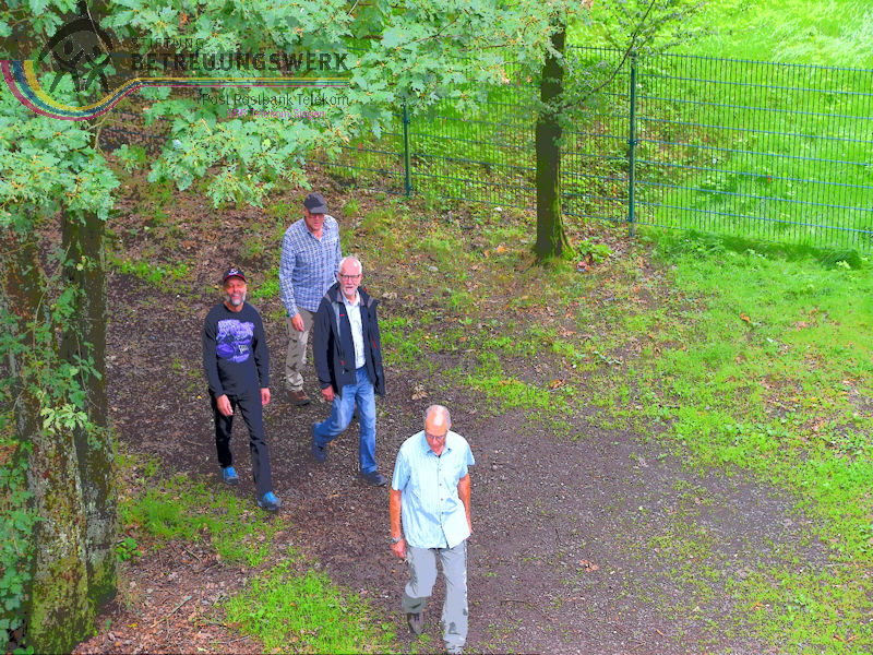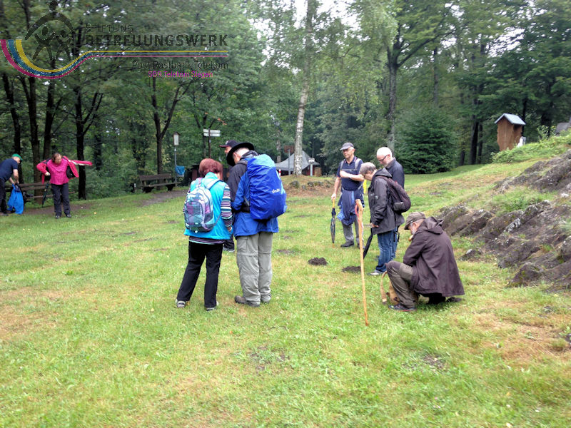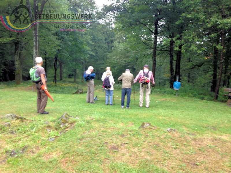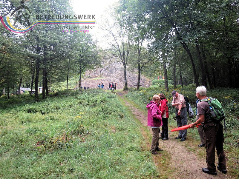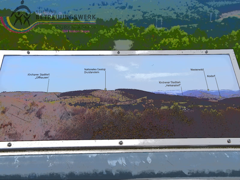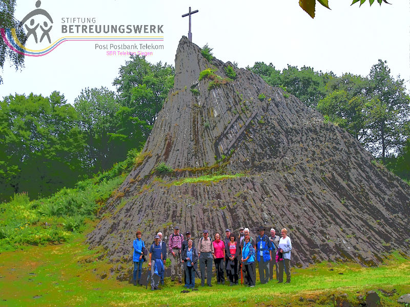 Der Treffpunkt unserer Wanderung war der Parkplatz bei Am Ottoturm 13a in Kirchen–Herkersdorf. Nachdem Lothar uns 18 wanderfreudigen und Wetter unerschrockenen Teilnehmern kurz erläuterte welchen Weg er uns führt, wanderten wir hoch zum Ottoturm, den wir allerdings links liegen ließen. Wir hatten beschlossen, diesen erst am Rückweg zu besteigen, da uns das Wetter noch zu verhangen war. Weiter ging es auf dem Druidensteig nach Offhausen und von dort ein kleines Stück durch den Ort. Nach der Querung der Straße waren wir wieder auf Waldwegen Richtung Sportplatz und Druidenstein unterwegs. Einigen von uns war der Druidenstein noch nicht bekannt und so konnte sich jeder die Zeit nehmen, die er brauchte um sich an den dortigen Info-Tafeln über die Entstehung des Druidensteins, zu informieren. Der Druidenstein ist etwa 25 Mio. Jahre alt. Die aufragenden Säulen (bis zu 15 m hoch) die den Druidenstein formen, sind wie die Scheite in einem Kohlenmeiler gebündelt. Wir nutzten die Gelegenheit mit dem Druidenstein im Hintergrund, zu einem Gruppenfoto. Weiter ging es nun am dortigen Kreuzweg bergab, Herkersdorf entgegen. Durch das Imhäuser Tal wanderten wir weiter und mussten kurz vor unserem Ziel noch eine ganze Weile bergauf gehen. Gegen 12.30 Uhr erreichten wir den Gasthof auf der Anhöhe von Kirchen-Herkersdorf, wo wir zum Mittagessen angemeldet waren. Essen und Personal waren vorzüglich. So gestärkt gingen wir anschließend ca. 200 m bergauf zu unserem Startpunkt zurück. Einige fuhren sofort nach Hause, andere gingen erneut die ca. 2 Min. bis zum Ottoturm (18,59 m hoch) um über 102 Stufen zur Aussichtsplattform auf 17,34 m Höhe zu gelangen. Belohnt wurden wir mit einer tollen Fernsicht über Teile des Siegerlandes und dem Kreis Altenkirchen. Bei guter Fernsicht sind auch das Rothaargebirge und das Siebengebirge von dort zu sehen. Wir legten 9,7 Kilometer und 447 Höhenmeter zurück.