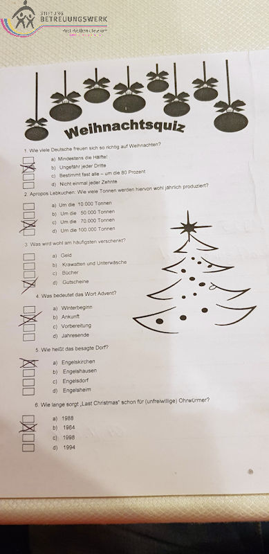 Auch in diesem Jahr fand eine Bus-Tagesfahrt zur gemeinsamen Weihnachtsfeier des Betreuungswerks P PB T – Region Mitte (Regionalstelle Trier) statt. Mit 54 Teilnehmern starteten wir vom P&R-Parkplatz TÜV/Stadion an der Leimbachstr. 229 in 57074 Siegen. Zu unser fast aller Überraschung fuhr der Bus, statt vom Parkplatz links zur Autobahnauffahrt Richtung Montabaur, nach rechts durch Siegen, über HTS, A4 in den bekannten morgentlichen Stau der Kölner Autobahnen, wodurch wir mit über einer Stunde Verspätung unser erstes Ziel Bitburg erreichten. Somit hatten wir den Beginn mit der Begrüßung durch Herrn Wolfgang Breil, Regionalstellenleiter des Betreuungswerk P PB T – Regionalstelle Trier, verpasst. Nachdem wir nun vollzählig waren, erfolgte die Begrüßung durch eine Angestellte des Hotel Eifelstern und wir Nachzügler bekamen selbstverständlich auch noch Gebäck und Glühwein serviert. Während unseres Aufenthaltes wurden wir vom Alleinunterhalter „Ray Karel“ mit Musik verwöhnt. Nachdem wir alle eifrig die vorgefundenen Fragebögen zum „Weihnachtsquiz“ ausgefüllt hatten und diese eingesammelt wurden, war es an der Zeit das Mittagsbuffet in Angriff zu nehmen. Eine Führung durch die Anlage fiel aufgrund des Dauerregens aus. Nun galt es noch am Nachmittag Kaffee und Christstollen zu genießen und aufs „Christkind“ zu warten, das uns eine Weihnachtsgeschichte vorlas. Auch wurde die Gewinnerin des Quiz gezogen und man staune; gewonnen hat eine Teilnehmerin aus Netphen. Jetzt war es an der Zeit die Rückfahrt anzutreten. Für den Besuch des Weihnachtsmarktes in Bad Münstereifel, inmitten des historischen Stadtkerns, blieben uns leider nur ca. 45 Minuten. Nach dem abendlichen Ausfall der Staus, vom Morgen um Köln , war nochmal Zeit für eine Rast an der Aggertal-Raststätte vorhanden. Hätte man dies schon vorher gewusst, wäre es sicher schöner gewesen, diese Zeit in Bad Münstereifel anzuhängen. Fazit, die Veranstaltung hat uns gefallen, hat fast das Niveau mit denen in den vergangenen Jahren im Eurostrand in Leiwen erreicht. Der Eurostrand konnte bereits aus Erfahrungen lernen. Mal sehen, wohin uns die Bus-Tagesfahrt im Dezember 2019 führt.