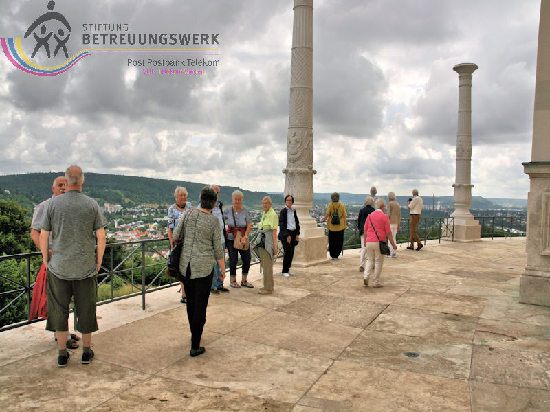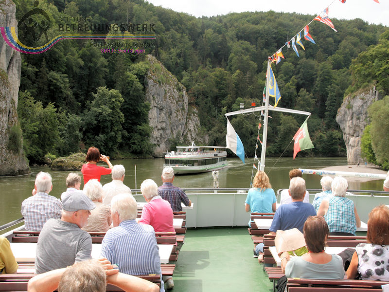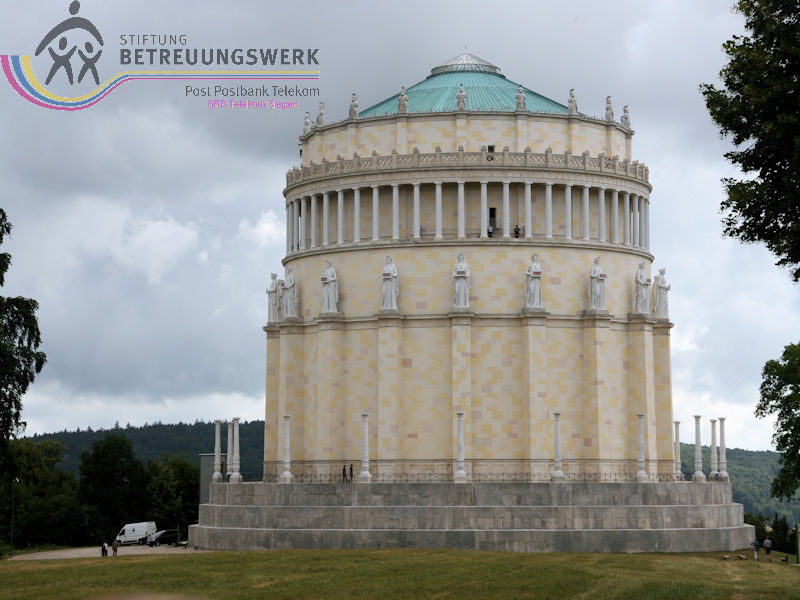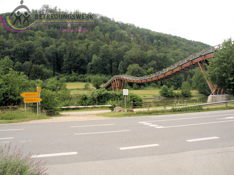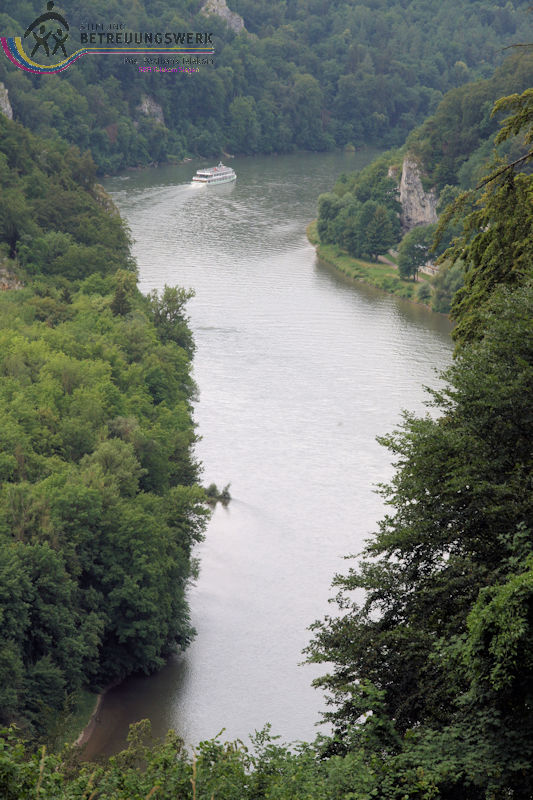 Am zweiten Tag unseres Aufenthalts (mit Reiseleitung) stand eine Tour durch das Altmühltal an. Zunächst wurde mit dem Bus Beilngries und die nähere Umgebung erkundet. Nächstes Ziel war der Ort Essing wo sich die mit 193 m längste Holzbrücke Europas über den Main-Donau-Kanal schwingt. Von den schönen Bildern, die sich uns boten konnten wir uns nur sehr schwer lösen. Aber wir hatten weitere schöne Ziele vor Augen: Schloss Prunn, welche als eine der schönsten Burgen Süddeutschlands gilt. Sie befindet sich in schwindelerregender Höhe auf einem mächtigen freistehenden Kalkfelsen aus der Zeit des Jura. Von diesen Felsen gibt es weitere, teilweise auch mit Gebäuden aufsitzend. Das ist nichts für ängstliche Gemüter. Weiter ging die Busfahrt nach Kelheim und hinauf zu der Befreiungshalle auf dem Michelsberg. Der mächtige Rundbau ließ König Ludwig von Bayern als nationales Denkmal errichten, was an den Kampf Deutschlands gegen Napoleon und die Einigung der deutschen Stämme erinnern soll. Das Innere der Halle ist als großer Kuppelsaal gestaltet. Die Kuppel kann über Treppen erklommen werden; was eine sehr anstrengende und schweißtreibende Tour, ist aber die Aussicht von oben auf Kelheim und den Kanal wert und entschädigt für alle Mühen. Nun wieder am Boden ging es mit dem Bus zum Hafen an der Donau. Erwartungsvoll betraten wir das Schiff und die Reise durch die Weltenburger Enge konnte beginnen . Leider dauerte die Fahrt nur 30 Minuten. In der Klosterschenke gab es eine gute Brotzeit. Dann war noch Zeit für eine Besichtigung der Klosterkirche. Der Bus stand schon bereit um uns wieder nach Beilngries zu bringen.