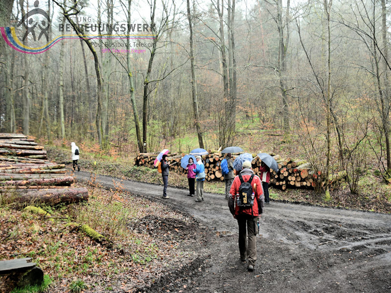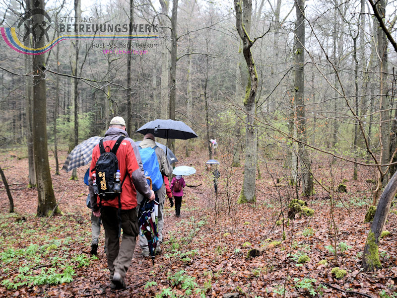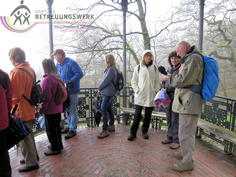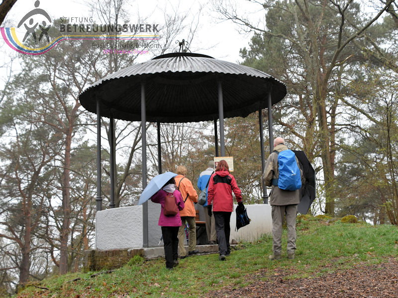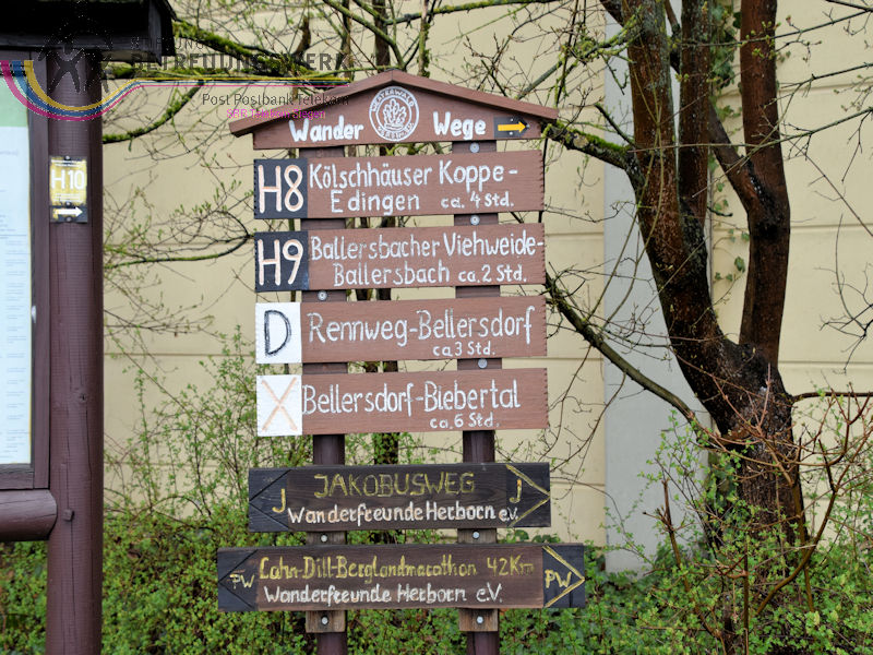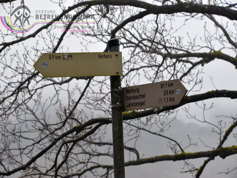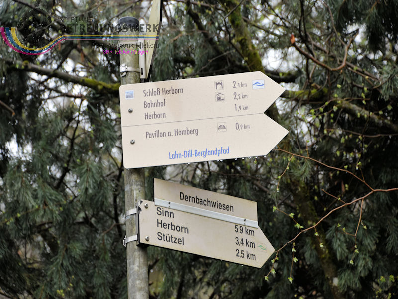 Treffpunkt war auf dem gebührenfreien „Schießplatz Parkplatz“, Schießplatz 1, in 35745 Herborn. Von dort wanderten wir los zum Bahnhof Herborn und folgten dort ca. 200 m den Bahnschienen, bis wir zu einem Brückenaufgang kamen. Dort gingen wir hinauf und dann rechts ein kurzes Stück der Straße entlang. An der Kreuzung unterschritten wir die Bundesstraße und gingen die Alsbachstraße aufwärts bis zur Höhe. Dort bietet sich bei klarer Sicht eine schöne Aussicht über Herborn und in den Westerwald. Nach ca. 100m, ging es bei einem Markierungspfahl, Wegekennzeichnung H6, (mit Blick zu einem Bauernhof), rechts ab in einen Feldweg. Von dort kann man den Rundblick auf das Dilltal Richtung Dillenburg, auf Burg, in den Schelderwald, ins Aartal nach Herborn-Seelbach, Bicken und Offenbach, genießen. Bis zu unserem 1. Rastplatz, dem Jahntempel, folgten wir der Markierung H6. Unsere Rast hatten wir uns nach dem langen, wenn auch gemütlichen Aufstieg, verdient. Nun ging es die paar Meter vom Jahntempel die Wiese runter wieder zurück auf den Wanderweg . Dort gingen wir dann rechts in den Weg, wo unter anderem auch der Grenzweg gekennzeichnet ist. An dieser Stelle ist die Kennzeichnung H6 nicht vorhanden. Diesen Grenzweg gingen wir nicht, sondern blieben auf dem Hauptweg bis wir linker Hand den Wasser-Hochbehälter sahen. An dieser Wegkreuzung gingen wir links (auf der anderen Seite des Wasser-Hochbehälters entlang) und folgten von nun an immer der Wegekennzeichnung H6. Nach ca. 100 Meter hielten wir uns rechts. An diesem Punkt kamen wir später links den Berg runter. Von dort wanderten wir wieder bis zu der Wegkreuzung, dem wir nur wenige Meter rechts und gleich halblinks folgten. Nach ca. 50m ging es links (H6) in den Pfad des Hombergs, dem wir abwärts folgten. Bald schon erreichten wir den Homberg-Aussichtstempel. Dieser wurde dort vermutlich um 1900 von Herborner Bürgern und vom Verschönerungsverein gebaut. Nun konnten wir auch endlich die Aussicht auf Herborn mit dem Schloss und der Umgebung genießen, da sich inzwischen das diesige Regenwetter doch aufklärte. Nach dieser letzten Rast folgten wir weiter bergab dem Pfad, immer noch dem H6, bis wir zum Schluss die Homberg-Treppe abwärts gingen. An der Reuterberg-Kreuzung überquerten wir bei der Ampel die Bundesstraße und gingen ca. 200 m bis zur nächsten Ampel, die wir überquerten und nun wieder bei unserem Startpunkt angekommen waren. Mit 10 WandererInnen hatten wir 9,3 Kilometer und 348 Höhenmeter zurückgelegt. Nachdem wir unsere Rucksäcke in den Pkw’s verstaut hatten gingen wir nun in die Herborner Altstadt bummeln. Dort fanden wir ein gemütliches Restaurant, wo wir zu einem guten Essen einkehrten. So gestärkt ging es anschließend zurück zum Parkplatz. Trotz Nieselregen hat uns die Wanderung, verbunden mit viel Spaß, gut gefallen.