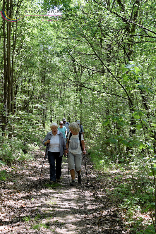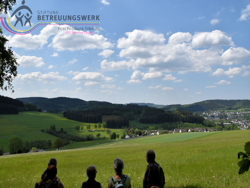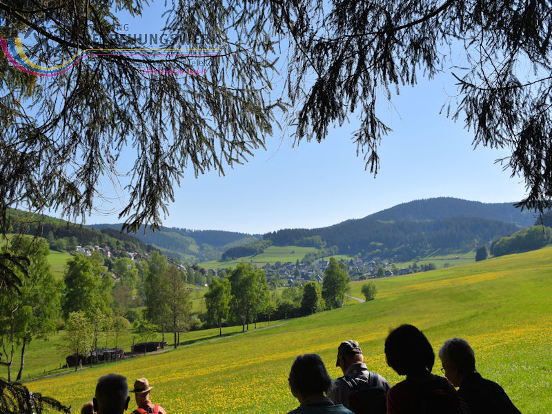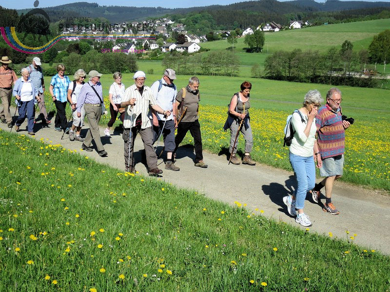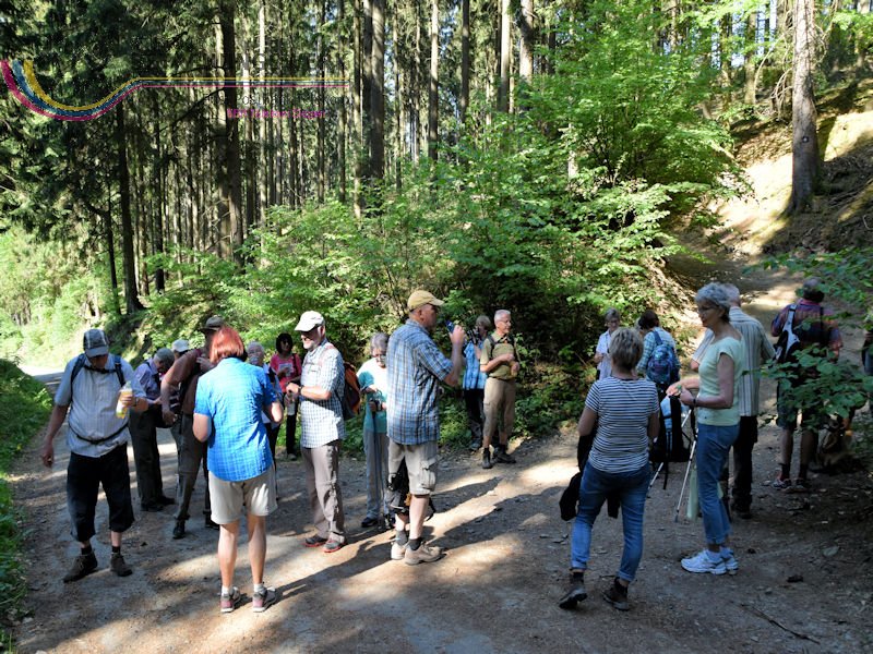 Der Treffpunkt war der Parkplatz am Gerberpark, Im Unteren Marktfeld 7, 57271 Hilchenbach. Das herrliche Sommerwetter hatte 22 WandererInnen animiert, an dieser Wanderung teilzunehmen. Der Rundwanderweg durchs obere Ferndorftal beginnt in der Stadtmitte von Hilchenbach. Nachdem uns Anne und Bernd, unsere Wanderführer, begrüßt und einige Informationen, wie z.B., dass die Stadtteile Helberhausen und Oberndorf sich auch Löffelstadt nennen und vom 17. bis ins 20. Jahrhundert dort auch Löffel geschnitzt wurden, wanderten wir los. Zunächst gingen wir vom Parkplatz den Berg runter zur Wilhelmsburg und dann links zum Kreisel an der B508 / L728 . Dort überquerten wir den Ferndorfbach. Hier zeigte uns bereits das Wanderzeichen (ein L in einem weißen Kreis), dass wir hier sofort links in die Straße (An der Wilhelmsburg) gehen mussten. Von nun an folgten wir dem gut ausgeschilderten Rundweg. Wir durchquerten Wiesen, Felder und durch Wälder gelangten wir nach Helberhausen und Oberndorf. Schöne Aussichtspunkte, wie auch unsere Fotos zeigen, begleiteten unsere Wanderung. In Oberndorf wechselten wir die Talseite und passierten den Ferndorfbach. Oberhalb von Oberndorf und Helberhausen wanderten wir weiter Richtung Hadem. Vorbei an dem Hilchenbacher Freibad kamen wir wieder zu unserem Startpunkt zurück. Doch zuvor führte uns unsere Wanderung (ab dem Kreisel) in den kleinen historischen Stadtkern Hilchenbachs, wo wir in einem Gasthof zum Mittagessen angemeldet waren. Wir hatten 11,4 Kilometer und 503 Höhenmeter zurückgelegt.