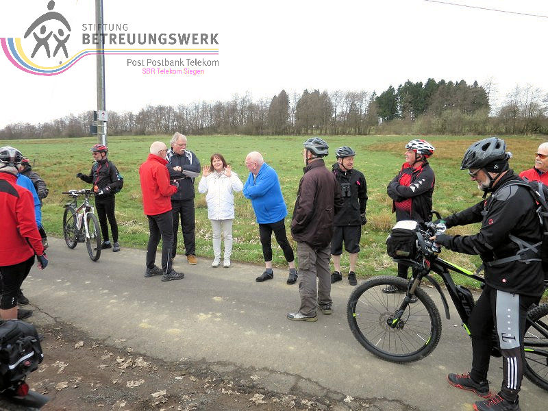 Mit einer so großen Teilnehmerzahl hatten wir nicht im Traum gerechnet. Insgesamt trafen sich 27 Radfahrer(innen) am 10. April beim Sportplatz in Burbach–Lippe. Nach einer kurzen Begrüßung durch Walter Schmidt übernahm Wolfgang Stock vom BUND Altenkirchen das Wort und stellte den geplanten Tagesablauf vor. Bei der ersten Ortsdurchfahrt durch Lippe folgten uns erstaunte Blicke, denn solch eine große Radfahrergruppe sieht man nicht jeden Tag. Kurz nach der Überschreitung der Landesgrenze nach Rheinland Pfalz legten wir bei dem Naturschutzgebiet Emmerzhausen den ersten Stopp ein. Dieses Gebiet wurde ursprünglich von Loki Schmidt (Ehefrau von Altbundeskanzler Helmut Schmidt) gegründet. Wolfgang Stock erläuterte kurz die Entstehung des Gebietes. Weiter führte die Fahrt zum höchsten Punkt der Tagestour, dem Höllenkopf mit 628 Meter Höhe. Von hier hatte man einen phantastischen Panoramablick bis hin zum Siebengebirge am Rhein. Hier hörten wir auch die Geschichte vom Absturz eines holländischen Starfighters (der Pilot wollte einen Bekannten dort oben begrüßen). Das hatte aber nicht zu 100% geklappt. Gott sei Dank war dem Pilot nichts passiert. Der weitere Verlauf führte über die ehemalige Kleinbahnstrecke, die von Kirchen hoch Richtung Siegerlandflughafen führen sollte. Vorbei an Friedewald und Langenbach legten wir kurz vor Lautzenbrücken die verdiente Mittagsrast ein. Anschließend fuhren wir durch Nisterberg und erreichten wieder das Gelände des Truppenübungsplatzes. Weitläufiges Gelände war nun zu sehen. Hier müsste nach den Ausführungen von Wolfgang Stolz unbedingt wieder ein Wanderschäfer mit seinen Schafen zur Landschaftspflege eingesetzt werden. Aber das steht in den Sternen. Unsere Fahrt führte weiter vorbei an den Ortschaften Hof und Stein bis zur Zufahrtsstraße des Geländes, die von der B54 kommt. Hier bedankte sich Walter Schmidt noch einmal bei Wolfgang Stolz für die sehr informative Führung und bei Horst Moroziuk für die geleistete Vorarbeit.