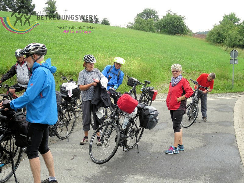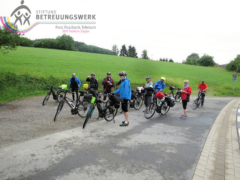 Trotz des schlechten Wetters fanden sich 6 wetterfeste Radler am Parkplatz des Krankenhauses ein. Mit einer halbstündigen Verspätung (Regen) ging es um 10.00 Uhr los und wir fuhren durch Kredenbach. Dort stießen noch einmal 4 Radler zur Gruppe und die Fahrt konnte beginnen. Durchs Industriegebiet Kredenbach entlang der Ferndorf nach Kreuztal. In Fellinghausen erwarteten uns noch zwei Radler und somit war die Gruppe komplett. Der Radweg führte uns durch Fellinghausen, durchs Heestal bis Oberhees. Hier erwartete uns ein steiler Anstieg auf die Hünsborner Höhe. Oben angekommen wurde eine Verschnaufpause eingelegt. Weiter führte uns der Radweg R 20 von Hünsborn nach Ottfingen, Rothemühle, Wendener Hütte bis Gerlingen. Nach der Mittagsstärkung im Schnellrestaurant Heuel fuhren wir immer auf dem R 20 Richtung Wenden. Dort wechselten wir die Talseite gelangten über Schönau, Alt Wenden auf die Eichener Höhe. Nach einer tollen Abfahrt nach Eichen erreichten wir den Roten Platz in Kreuztal. Hier schloss sich der Kreis der Wendener Runde. Bis zum Ausgangsparkplatz war es nun nicht mehr weit und nach 45 Km und mit trockener Kleidung wurde dieser erreicht.