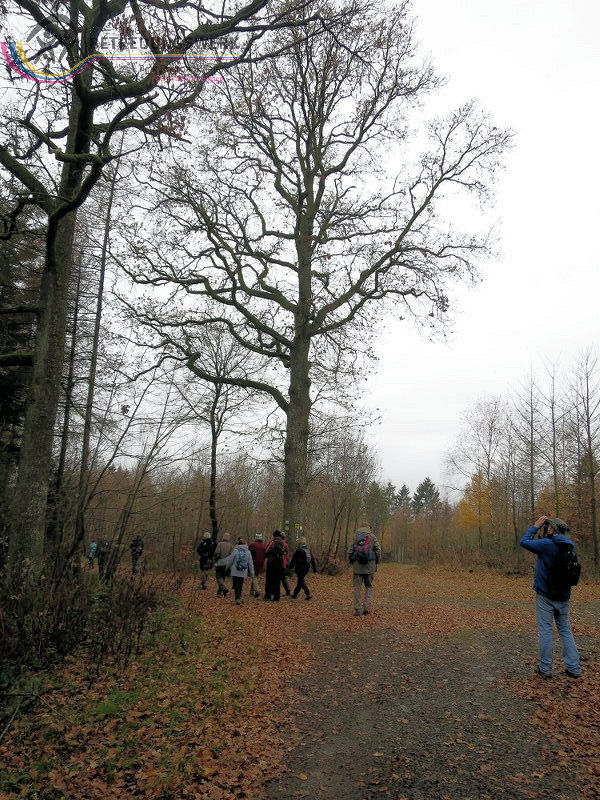 Wir trafen uns auf dem Wanderparkplatz an der L729 zwischen 57250 Netphen–Unglinghausen und 57223 Kreuztal–Kredenbach. Nach der Begrüßung, durch unsere Wanderführer Anne und Bernd, wanderten wir 15 WandererInnen bei trockenem Wetter los. Der gut gekennzeichnete Themenweg ist zu jeder Jahreszeit zu empfehlen. Er führt über die Höhen rund um Unglinghausen mit herrlichen Waldbeständen, die dem Orkan Kyrill nicht zum Opfer gefallen sind. Wir wanderten durch Unglinghausen, das Langenbachtal mit seinen alten Eichen, vorbei an der Grube Waidmann und über die Herzhäuser Höhe. Leider hatten sich der Kindelsbergturm und die Ginsburg im Nebel versteckt, dafür waren die Hilchenbacher Windkrafträder nicht zu übersehen. Auf 14 Hinweistafeln entlang des Weges konnte wer wollte, sich über die Besonderheiten des Weges informieren. Leider funktionierten die QR-Codes nicht, die Seite auf www.unglinghausen.de öffnete sich nicht. Der Weg führte uns vorbei an der Wolfsbornquelle, durch das Quellgebiet Sineborn, größte der drei Quellen an der Lichtenhardt (man vermutet hier den Ort einer sehr frühen Erzverhüttung) und zurück zum Ausgangspunkt. Am Ende der Wanderung waren wir zur Mittagseinkehr in einem nahegelegenen Restaurant angemeldet. Wir legten 9,7 Kilometer und 369 Höhenmeter zurück.
