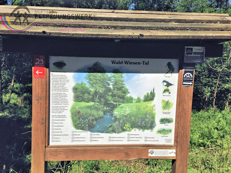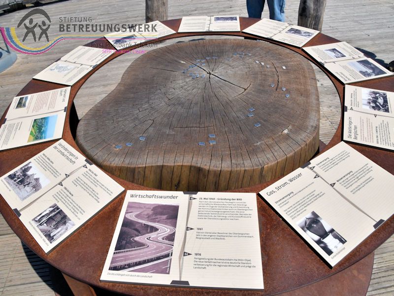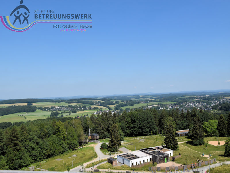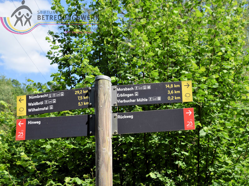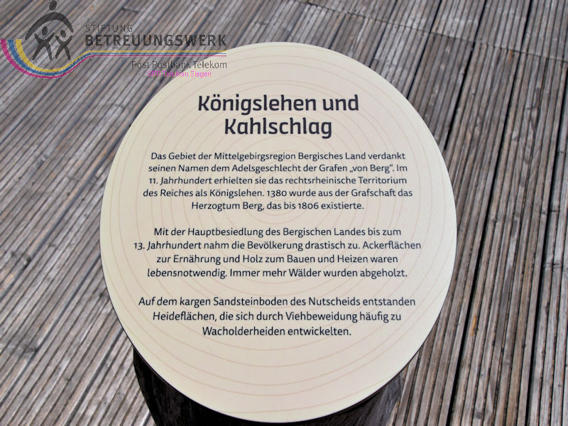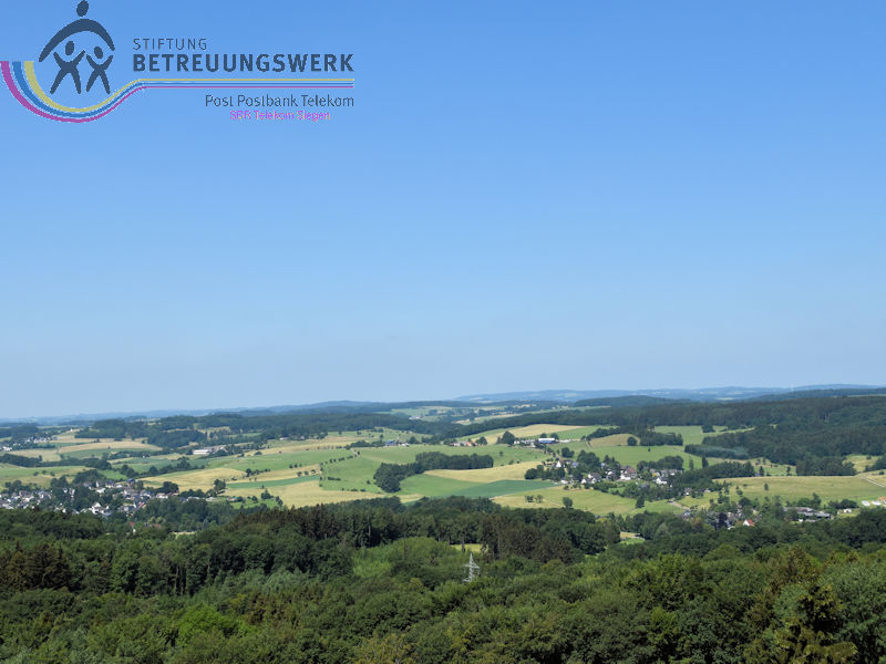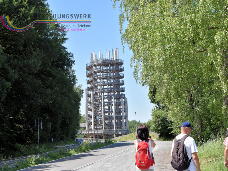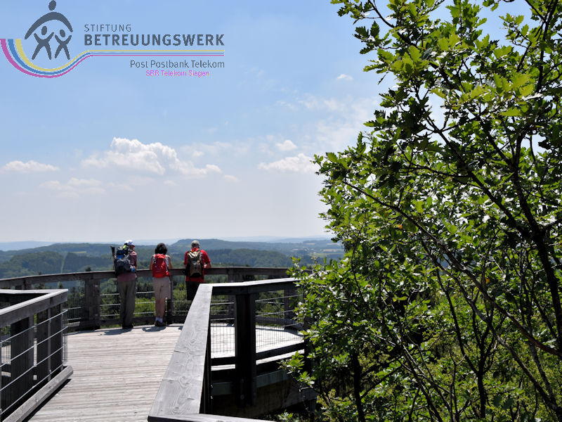 Treffpunkt zur Wanderung war auf dem Wanderparkplatz vor der „Vierbuchermühle“ südlich von Waldbröl. Nach der Begrüßung starteten wir die von Horst geführte Wanderung über den Waldmythenweg. Zunächst zeigte uns Horst jedoch den Weg der vor uns lag, anhand der auf dem Parkplatz befindlichen Info-Tafel. Dieser Weg ist der 23. Premiumwanderweg der „Bergischen Streifzüge“ und durchgängig mit der in weiß geschriebenen Zahl 23 auf rotem Hintergrund, gekennzeichnet. Auf dem gesamten Weg befinden sich elf solcher sehr informativen Hinweistafeln mit Geschichten zum Anhören, nachdem man durch Kurbeln die Technik in Gang setzt. Dies ist besonders für Kinder, eine interessante Angelegenheit. Erzählen diese Geschichten doch unter anderem von Elfen, Zwergen, Riesen, Hexen und Wölfen. Nach ca. 7 km verließen wir für die Besichtigung des Naturerlebnisparks „Panarbora“, den Mythenweg. Wir entschieden uns zuerst auf den 40 m hohen Aussichtsturm zu gehen. Die Aussichtsplattform befindet sich 34 m über dem Erdboden. Für den Turm wurden 870 m³ Holz und 200 t Stahl verbaut. Oben angekommen ließen wir uns Zeit die Fernsicht zu genießen. Nicht nur der Blick über das Bergische Land war faszinierend, sondern z.B. auch, dass wir bis zum Siebengebirge und zur Nordhelle schauen konnten. Natürlich ließen wir es uns nicht nehmen auch über den gesamten Baumwipfelpfad, der eine Gesamtlauflänge einschließlich Turmaufgang von 1.635 m, eine Höhe von bis zu 23 m über Grund und 6 interaktive Lerninseln hat, zu gehen. Anschließend galt es noch durch das Gelände, über den Sinnesweg zu gehen. Dabei legten wir unsere Mittagsrast in der dortigen Grillhütte ein. So gestärkt traten wir den Rückweg über den Waldmythenweg an und legten bei dem einem oder anderen Aussichtspunkt kleine Pausen ein. Bevor wir zu unserem Ausgangspunkt kamen, nutzten wir die Gelegenheit noch im Gasthof einzukehren. Wir 6 WanderInnen legten 15,3 km und 762 Höhenmeter zurück.