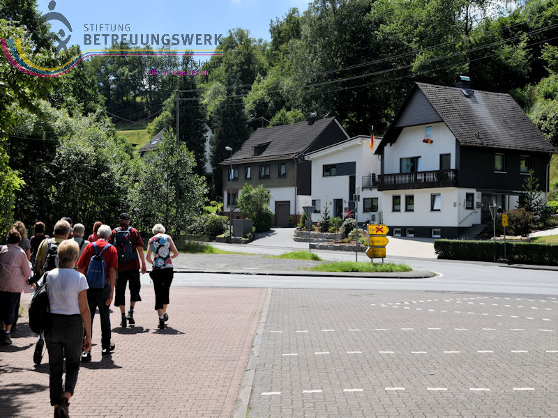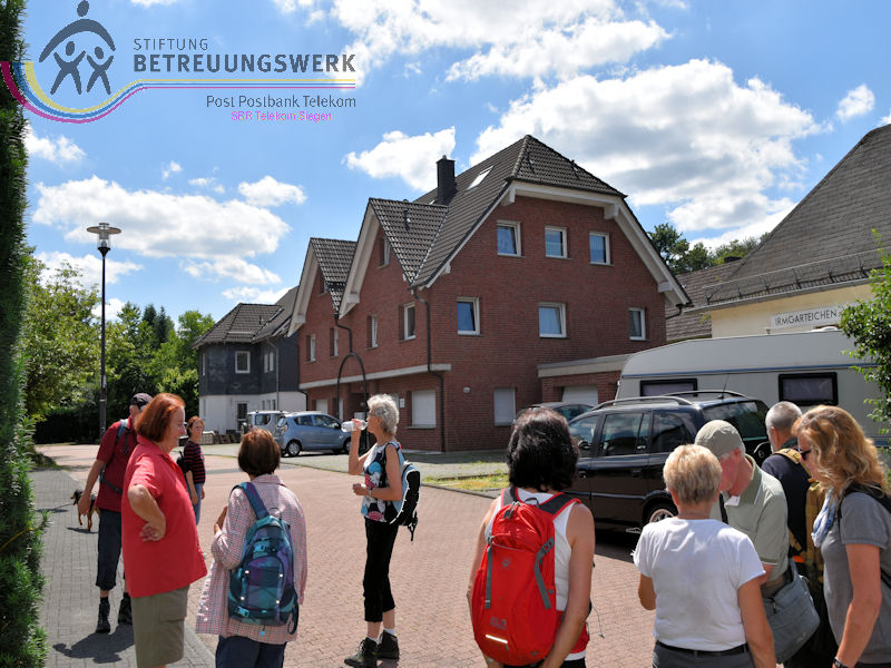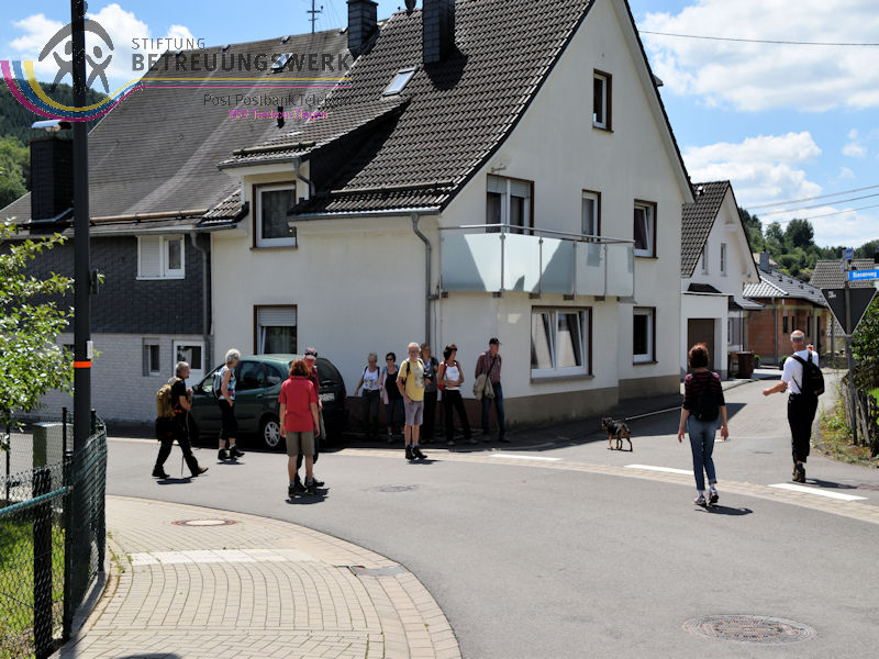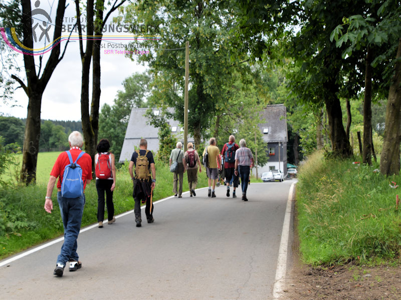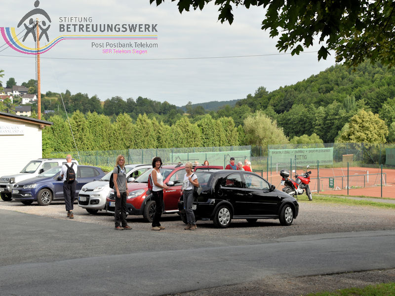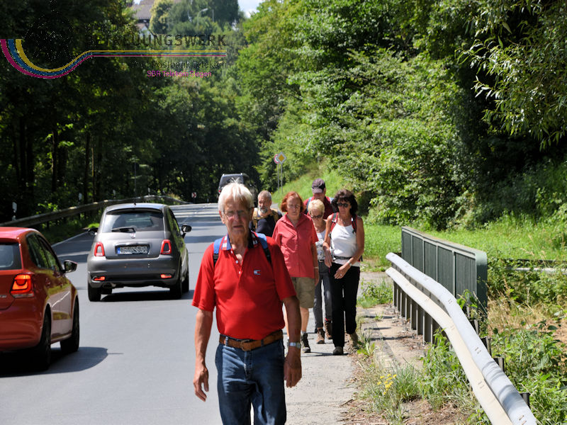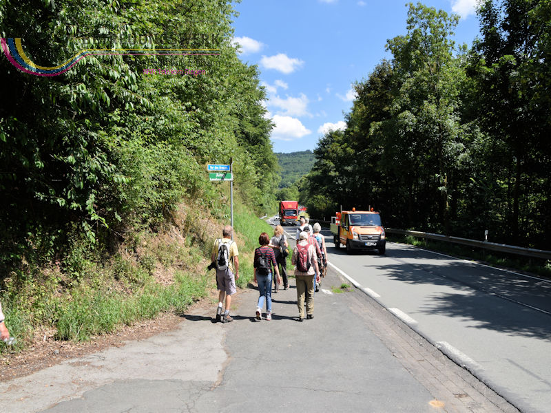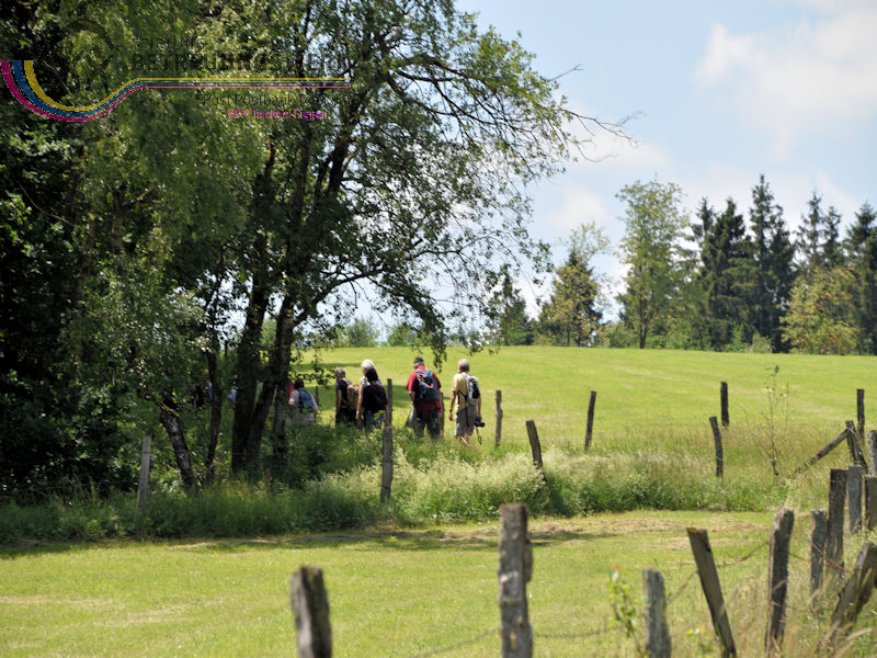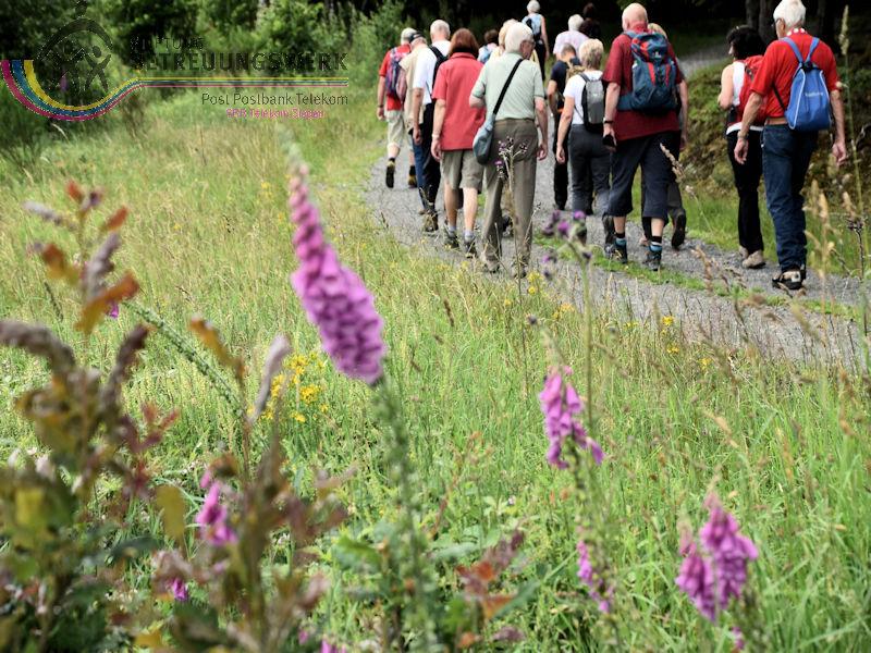 Treffpunkt war der Parkplatz am Sport- und Schulzentrum „Oberes Johannland“, Kirchweg 34, 57250 Netphen, welches zwischen den Orten Netphen–Irmgarteichen und Netphen-Hainchen liegt. Nachdem Bärbel und Guido uns 18 WandererInnen begrüßt und auch einiges zum Wanderweg gesagt hatten, wanderten wir bei wieder bei sommerlichen Temperaturen los. Zunächst ging es kurz bergab, an der Straße links ca. 100 m entlang bis wir rechts hoch wanderten. Der Wanderweg führte uns zunächst in Hanglage an dem Ort Werthenbach–Bahnhof vorbei, begleitet von schönen Aussichten ins Werthenbachtal und die umliegenden Berge. Nachdem wir den Ort (Alt-) Werthenbach durchquert hatten, legten wir an dem neu angelegten Wanderparkplatz eine Rast ein, um den „Aufstieg“ zum Lahnhof, in Angriff zu nehmen. Dieses längere Stück bergauf ließ sich jedoch leicht gehen. Über den Lahnhofsrücken erreichten wir, bereits eine Stunde früher als geplant, unser Ziel, den Landgasthof. Guido überließ jedem einzelnen die Entscheidung noch auf der Bank oberhalb des Gasthofs, den Ausblick zu genießen, sofort zum Gasthof zu gehen oder noch eine zusätzliche Runde zu gehen. Dieses Stück Weg bot uns auch noch eine herrliche Fernsicht, so konnten wir wie so oft auf unseren Wanderungen den Kindelsbergturm erblicken. Ebenso entdeckten wir unter anderem den Sendeturm Ederkopf. Weiter ging es nun, vorbei an der Lahnquelle zum Gasthof, wo wir zum Mittagessen angemeldet waren. So gestärkt und ausgeruht, wanderten wir über die Wanderwege X2 und A4 wieder abwärts ins Werthenbachtal zurück. Bei dem früheren Bahnhofsgebäude Irmgarteichen-Werthenbach, legten wir einen kurzen Stopp ein. Guido erklärte uns wo die frühere Bahntrasse entlang ging und zeigte uns auf einem Foto wie das damalige Bahnhofgebäude ausgesehen hat. Nachdem wir unter anderem auch ein Stück über den „Keiler-Radweg“ gewandert waren, erreichten wir bald schon unseren Ausgangspunkt. Wir legten aufgrund der zusätzlichen Runde 13,6 km und 547 Höhenmeter zurück. Ein Lob an dieser Stelle, dass alle diese Mehrkilometer ohne „Meuterei“ geschafft haben – Danke!!!