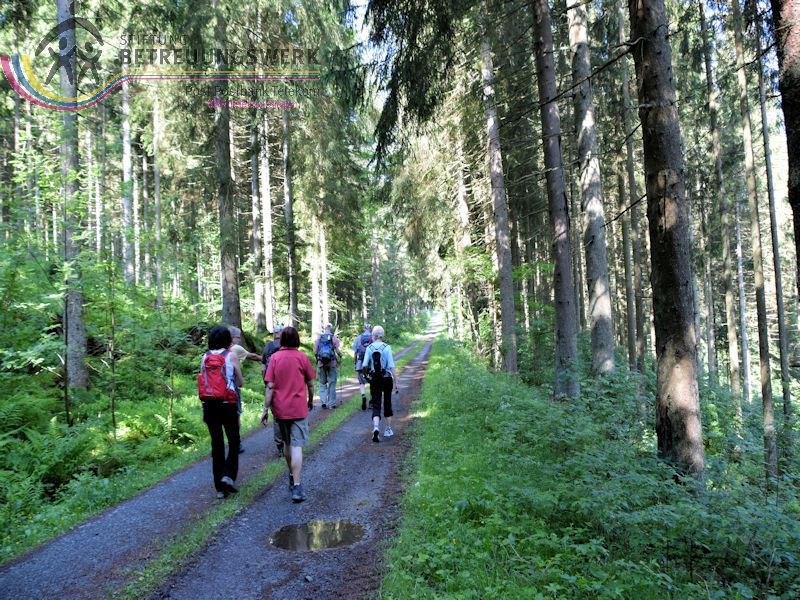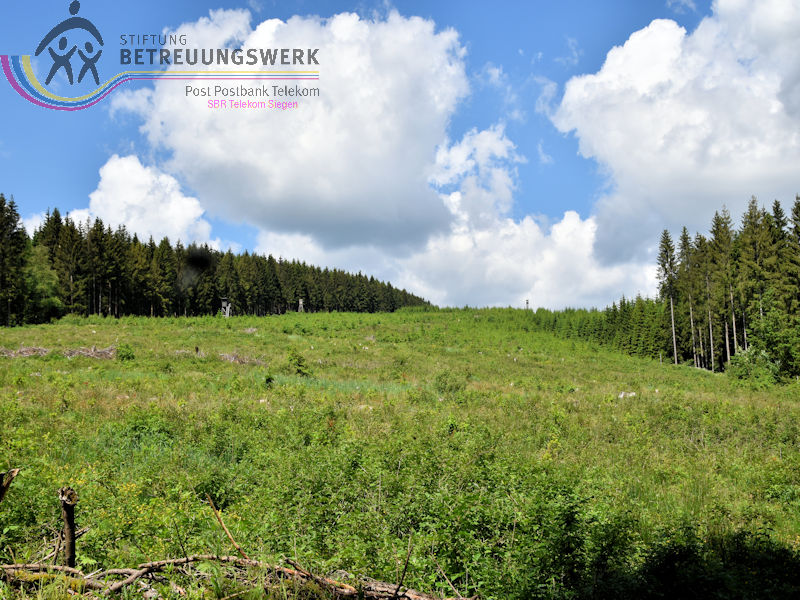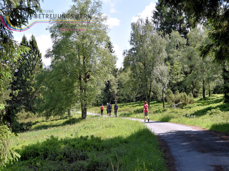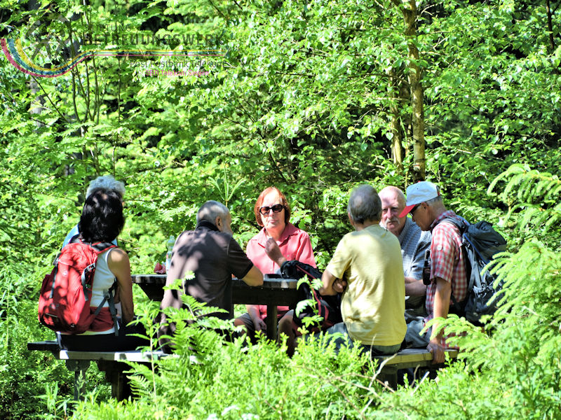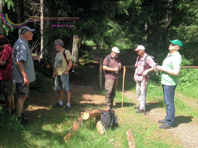 Treffpunkt war auf dem Wanderparkplatz „Am Zinsebach“, Große Mitte 1, 57339 Erndtebrück– Zinse, im Wittgensteiner Land. Mit 8 WanderInnen starteten wir nach der Begrüßung durch unseren Wanderführer Dieter die Tour. Zunächst wanderten wir ca. 150m an der Straße entlang bergauf bis wir in der Linkskurve rechts in den Wald gingen und so auf dem Wanderweg waren. Durch das Zinsetal, auf Hilchenbacher Gebiet, ging es eine leichte, längere Steigung bergauf zum Dreiherrenstein. Dort, so sagte uns Dieter, stießen die Herrschaftsgebiete des kurkölnischen Sauerlands (später Herzogtum Westfalen), Nassau-Siegen und Sayn-Wittgenstein, zusammen. Hier legten wir auch bei herrlichem Sonnenschein unsere erste Rast ein. Vor zwei Jahren hatten wir diesen Rastplast bereits von einer anderen Seite kommend, zur Rast genutzt. Weiter ging es auf Kirchhundemer Gebiet bergab, entlang des Rothaarsteigs zur Heinsberger Hochheide und zum Ostportal des Heinsberger Tunnels. Auch hier wusste Dieter uns geschichtliches Wissen zu vermitteln. Weiter wanderten wir durch die NSG Dörnbach- und Schwarzbachtal ins Tal der Röspe. Am Herrenhaus in Röspe, wieder auf Erndtebrücker Terrain, ging es kurz bergauf, vorbei am Rösper Weiher, bis nach Zinse, wo wir nach wenigen Metern bergauf, entlang der Straße, wieder bei unserem Startpunkt, ankamen. Wir legten mühelos, die von Dieter gut ausgesuchte Wanderung zurück. Durch das herrliche Sommerwetter konnten wir an vielen Stellen die tolle Aussicht genießen, unter anderem sahen wir die Hilchenbacher Windkrafträder. Insgesamt legten wir 15,2 Km und 612 Höhenmeter zurück. Es lohnt sich auch die Infos auf der Seite Hörgeschichten der Gemeinde Kirchundem, dort die Podcasts: Dreiherrenstein, Heinsberger Heide und Hufeisenstein, anzuhören.