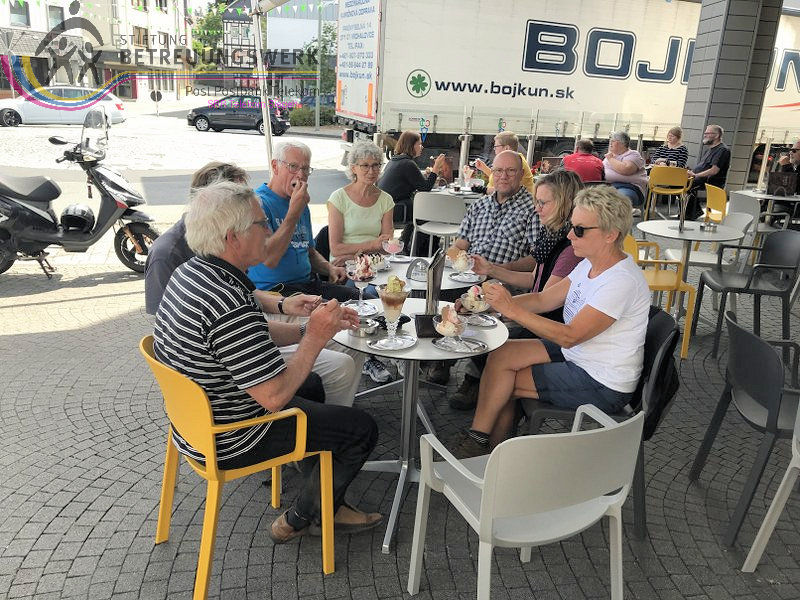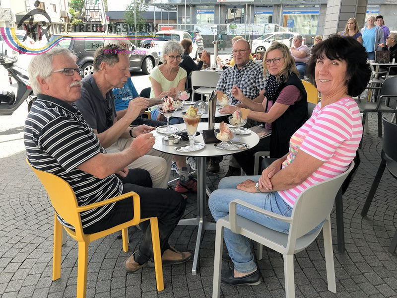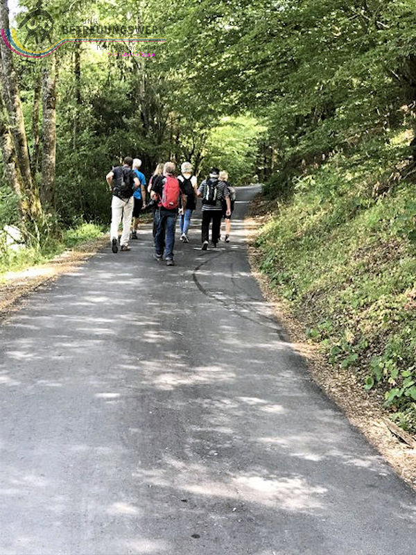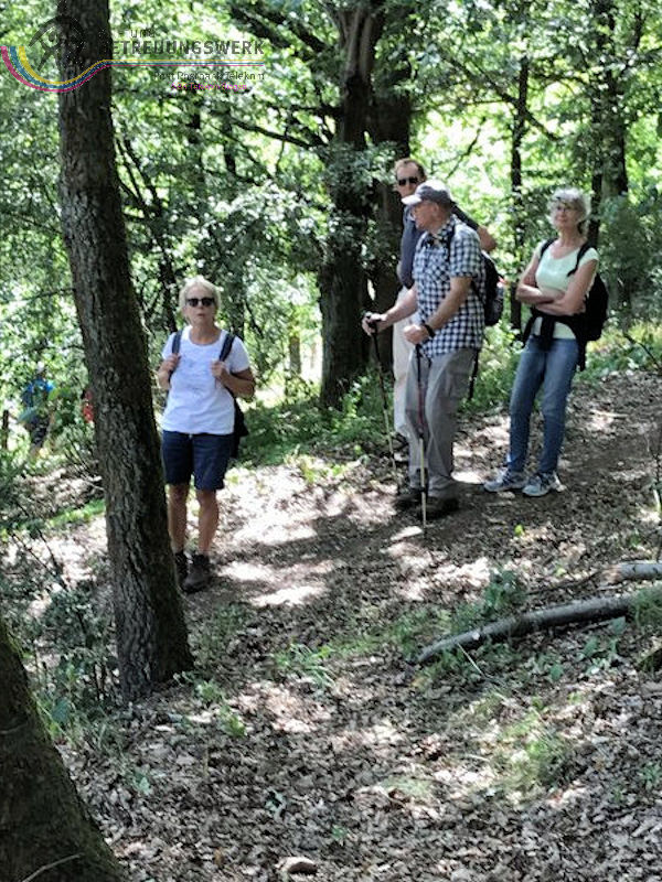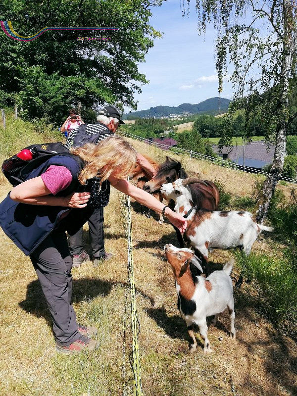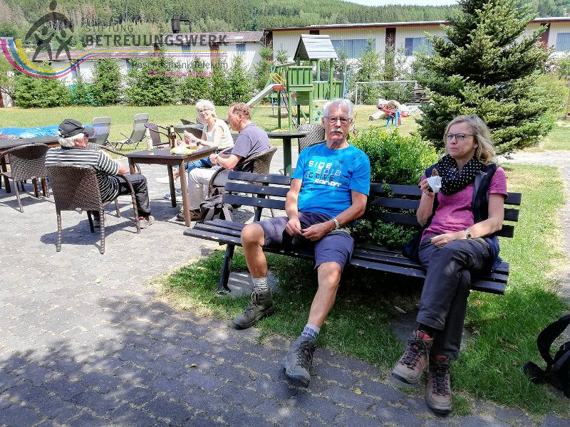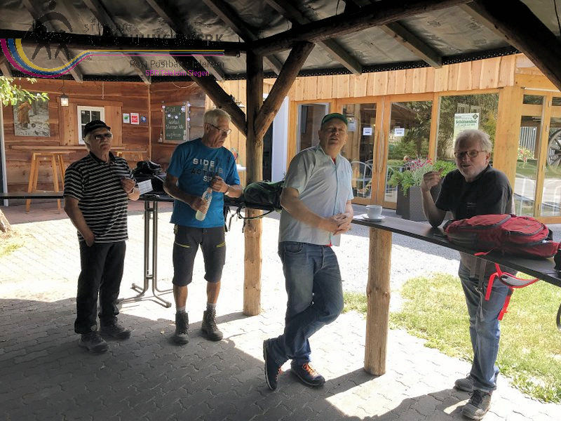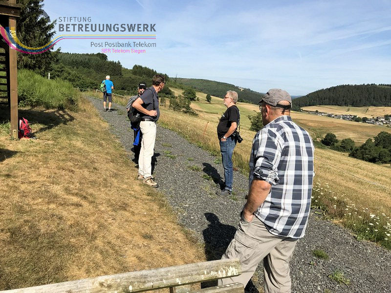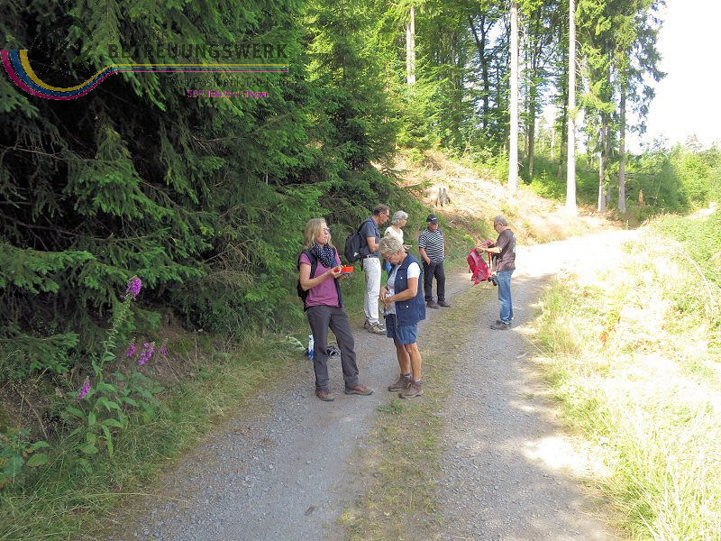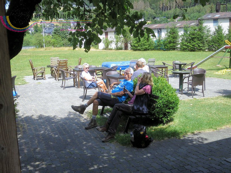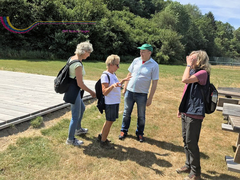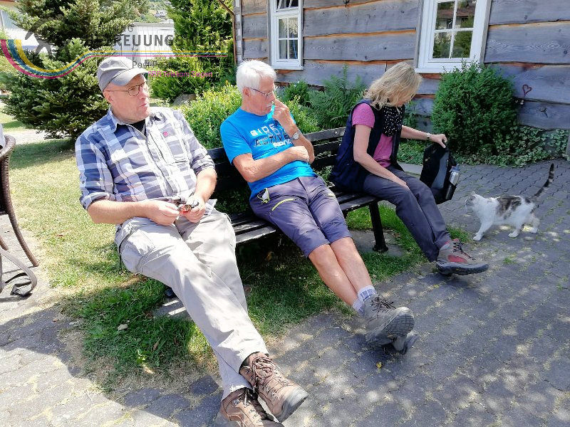 Zum Treffpunkt auf dem Wanderparkplatz gegenüber der Gaststätte „Zum Bahnhof“, Arfelder Hauptstraße 1, 57319 Bad Berleburg–Arfeld hatten sich 9 WandererInnen getroffen. Zunächst begrüßte uns die heutige Wanderführerin Annette und schon ging es los. Nach der Überquerung der Brücke über die Eder wanderten wir über einem Waldpfad bergauf und so wurde unsere Kondition sofort auf die Probe gestellt. Bald schon erreichten wir den ersten von noch weiteren tollen Aussichtspunkten. Bei herrlichem Sommerwetter hatten wir während der Wanderung immer wieder sehr schöne Aussichten. So erblickten wir auch immer wieder die Turmspitze der „Sackpfeife“. Auf der Wanderung umrundeten wir das Hainbachtal und gelangten zum Mühlbachtal. Entlang der Ederschleifen erreichten wir gegen Mittag unseren vorgesehenen Rastplatz an der Schwarzenauer Mühle, wo wir bereits von einem Kollegen erwartet wurden. Weiter ging es nun zum nächsten langen steilen Anstieg, der zum Oberen Hüttental führte. Von dort konnten wir einen Blick auf die bereits zurückgelegte Strecke werfen. Auf dem weiteren Weg kamen wir in Arfeld an der Dekanatskirche und der Alten Schmiede vorbei, in der inzwischen auch die Möglichkeit besteht zu heiraten. Von uns waren allerdings keine heiratswilligen dabei. Weiter ging es natürlich mal wieder bergauf, bevor wir in Serpentinen bergab zur Eder gelangten und über den Ederauenradweg entlang der Eder zurück zu unserem Ausgangspunkt gelangten. Wir legten 18,8 km und 947 Höhenmeter zurück. Allerdings sind wir nicht nur über den gut gekennzeichneten Wanderweg „Via Adrina“ gewandert, sondern haben ein paar Schleifen bergauf weggelassen, da diese nach kurzer Zeit immer wieder auf den Hauptweg führten. Die dadurch gesparten Kilometer und Zeit, ermöglichten uns noch zum Abschluss gemeinsam bei einem Eis die Wanderung ausklingen zu lassen.